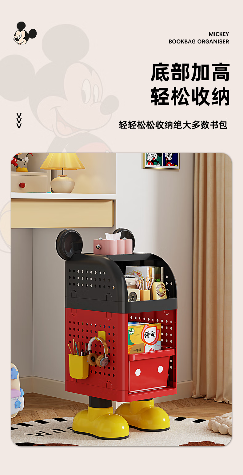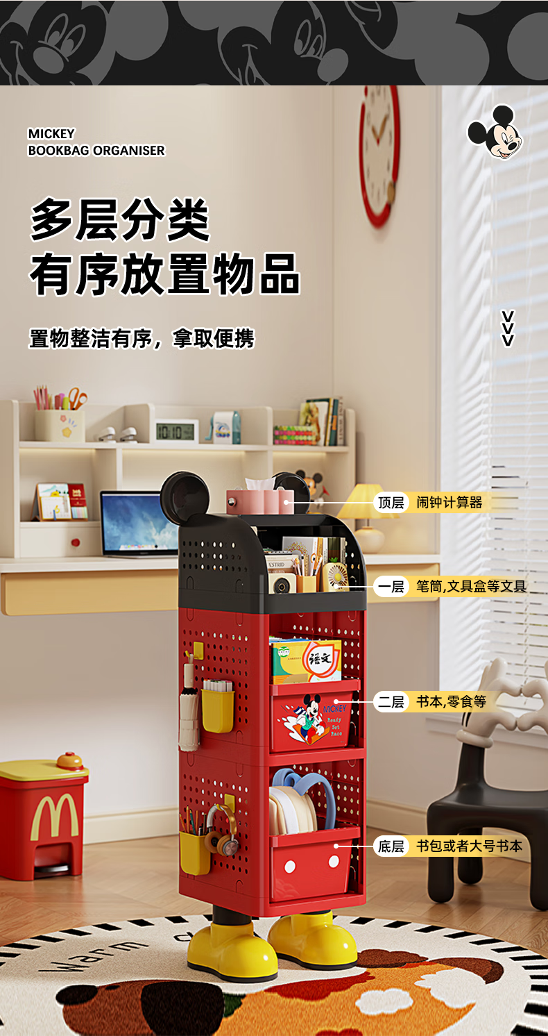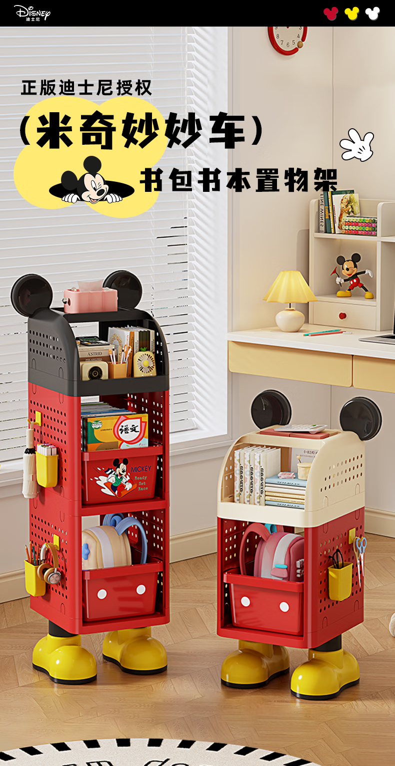 邦尼美家迪士尼书包置物架可移动小推车家用放书本桌下滑轮柜米奇联名收纳 米奇滑轮款-2层【35*36*69cm 】 【迪士尼正品授权】放心购