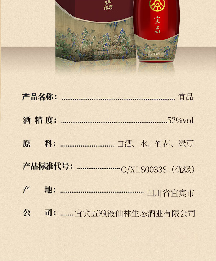 五粮液仙林 宜品 仙林生态酒 节日送礼 千里江山 送礼宴饮 52度 500mL 2瓶 礼盒装