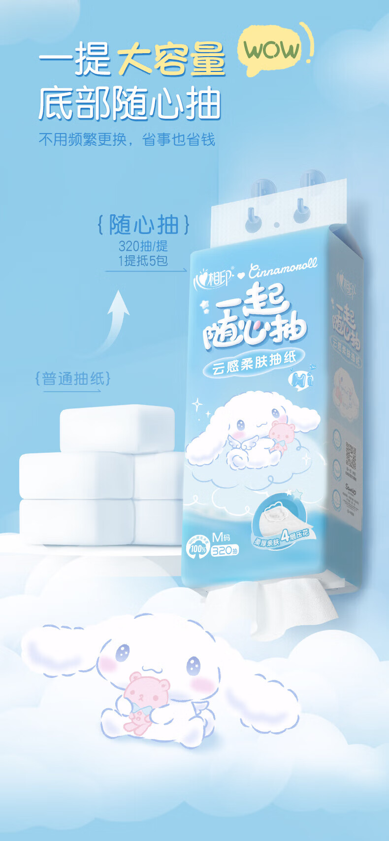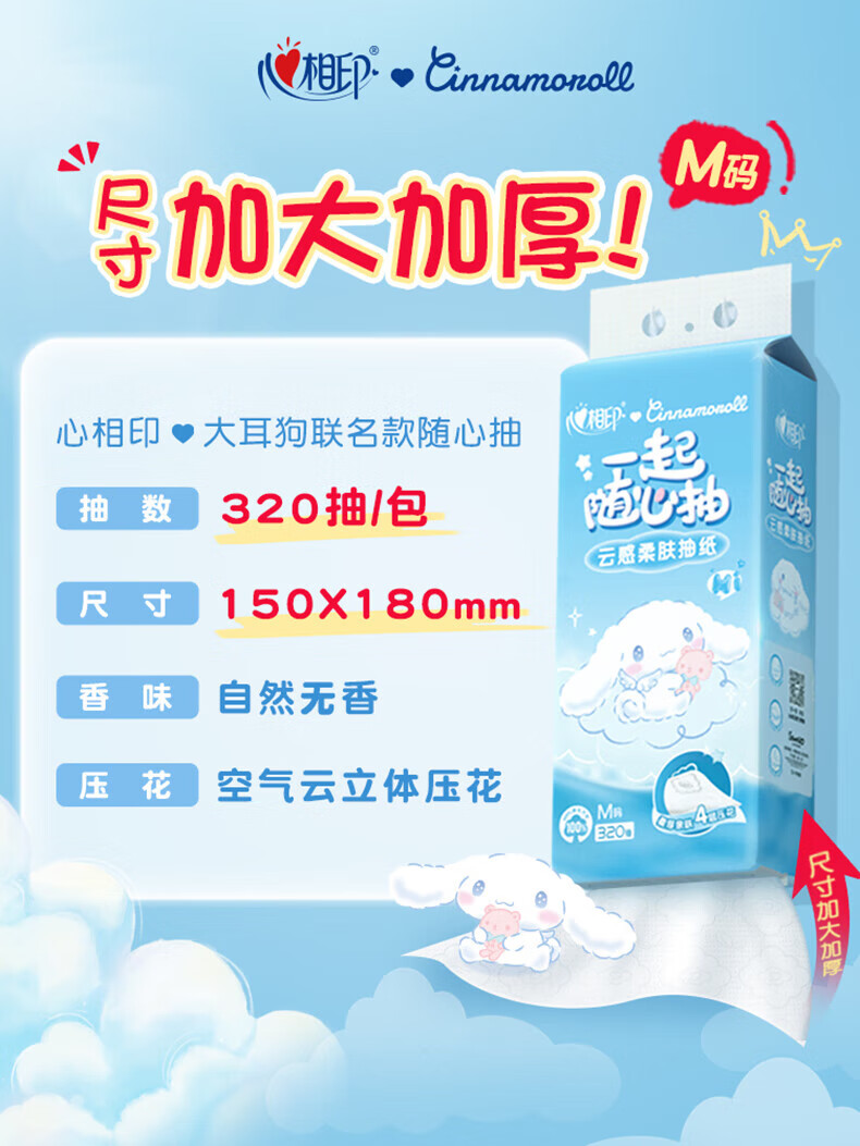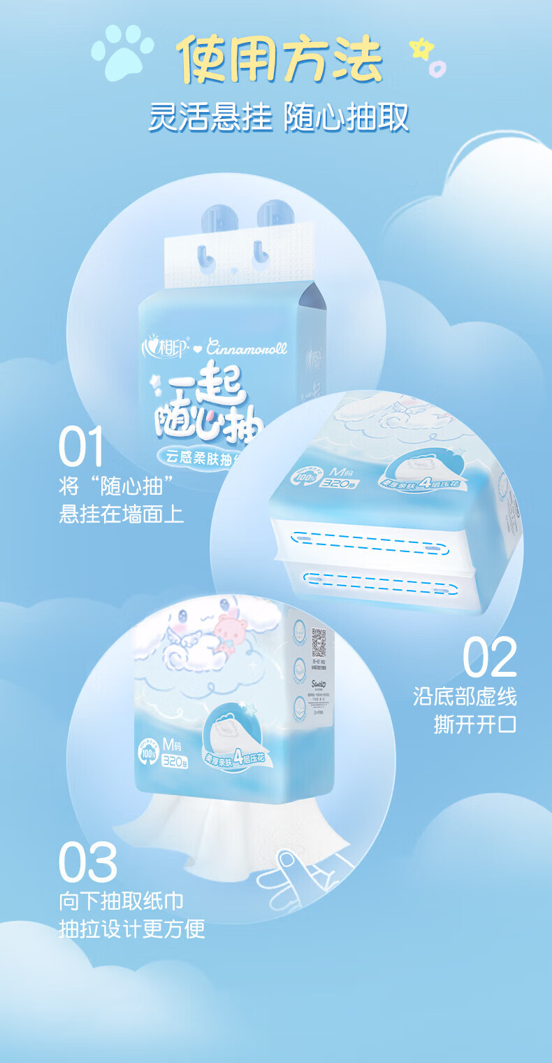 心相印抽纸悬挂式纸巾挂抽卫生纸大包加大加厚家用4提320抽餐巾纸面巾纸 4层320抽*4提【送挂钩】