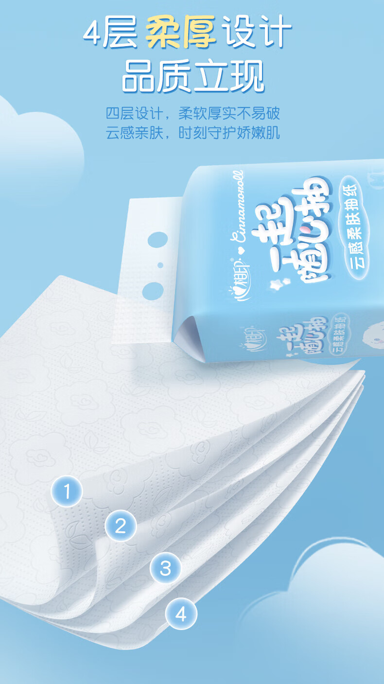 unifree柔纸巾云柔巾加厚婴儿保湿纸抽纸擦鼻子宝宝乳霜纸 3层 30抽*10包