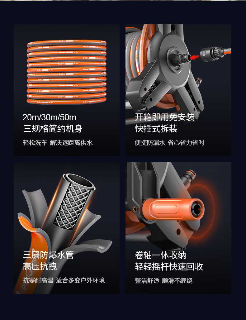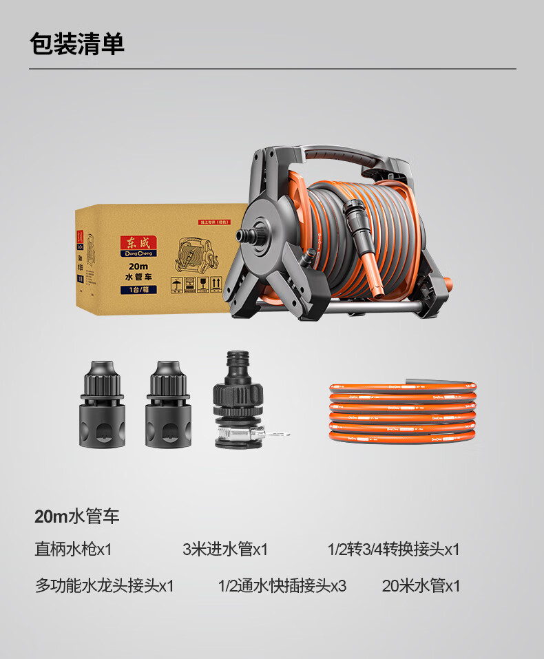 东成水管软管浇水20米专用高压洗车浇花家用接自来水防冻管子收卷器
