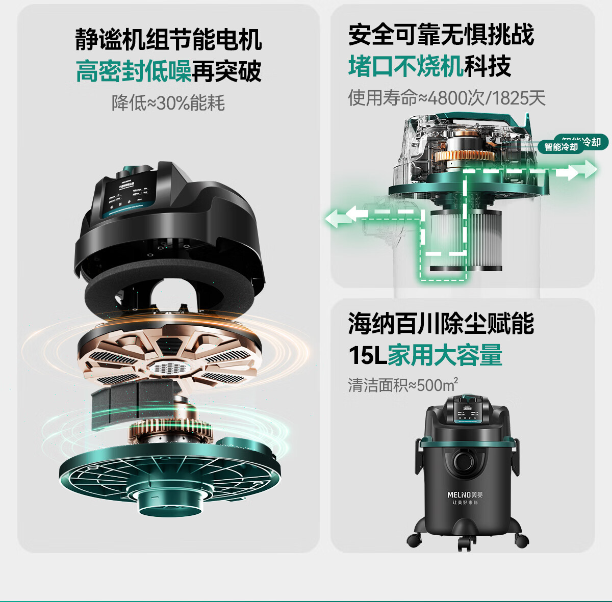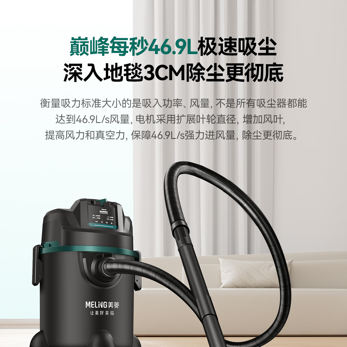 美菱家用吸尘器大功率超强吸力工业装修美缝商用车用开荒地毯仓库酒店强力吸尘机国家补贴