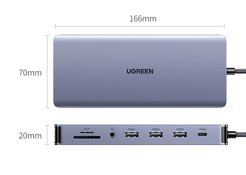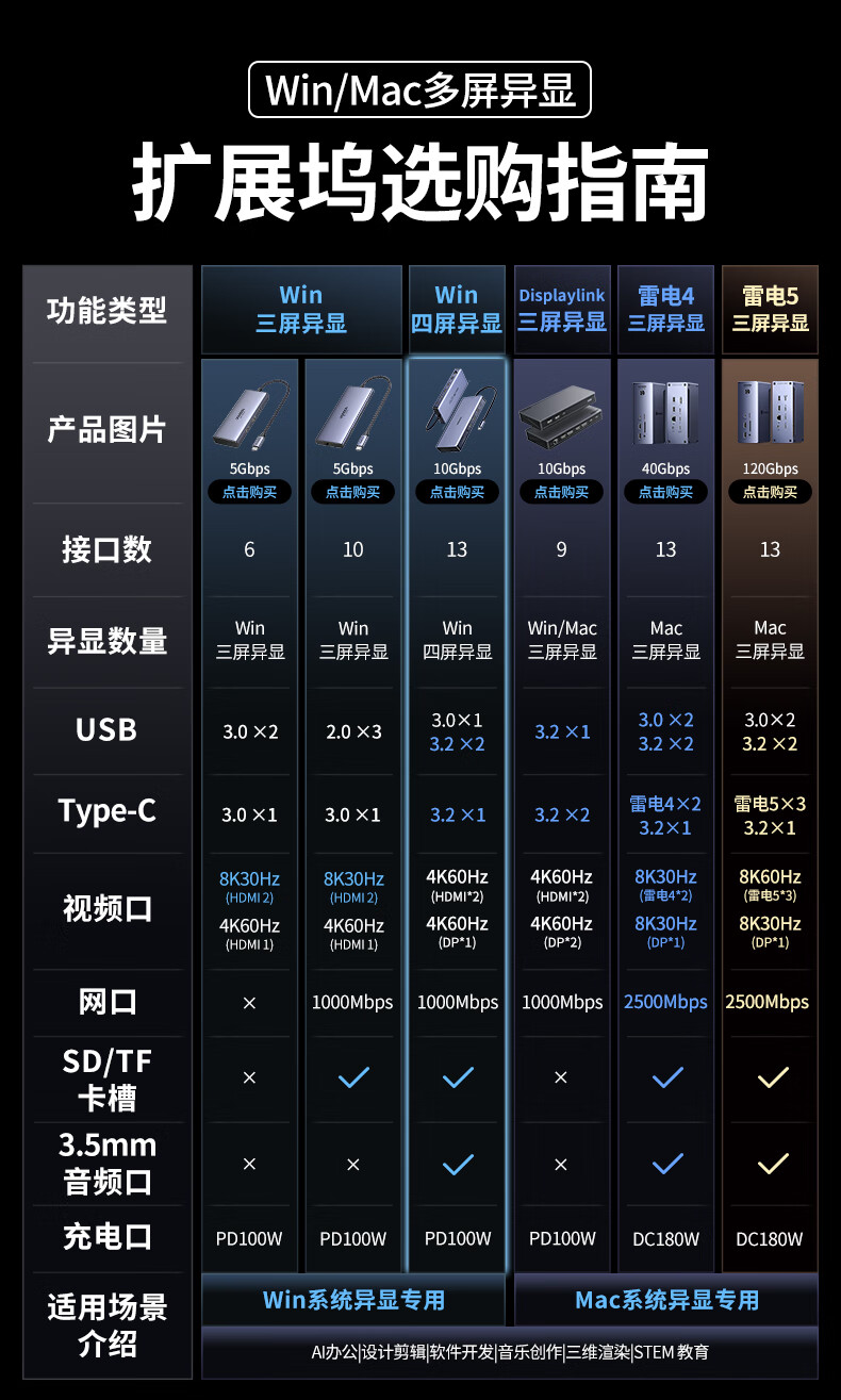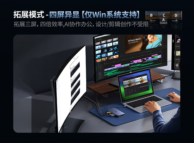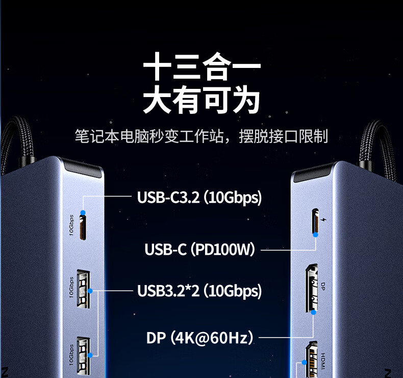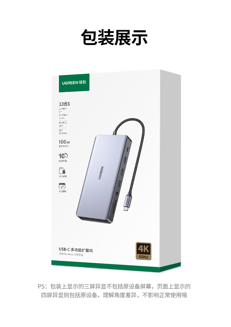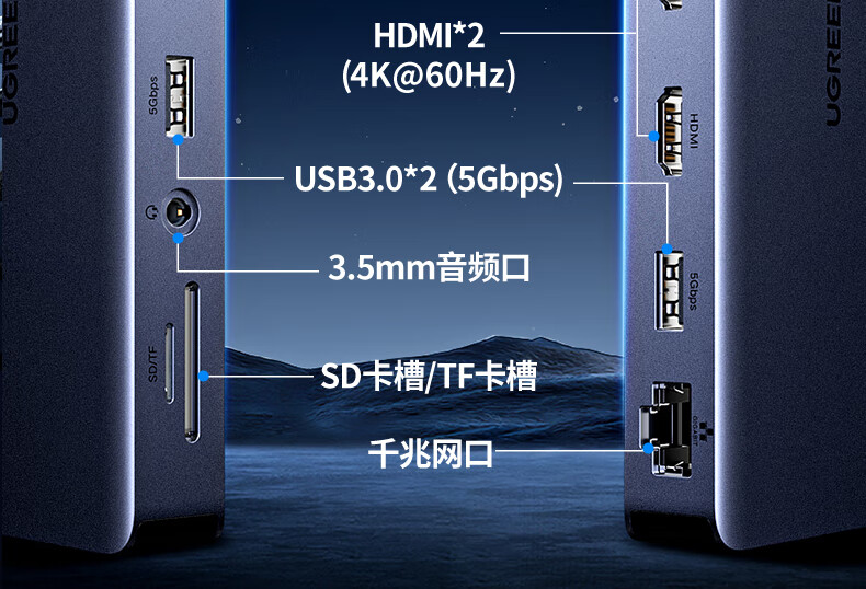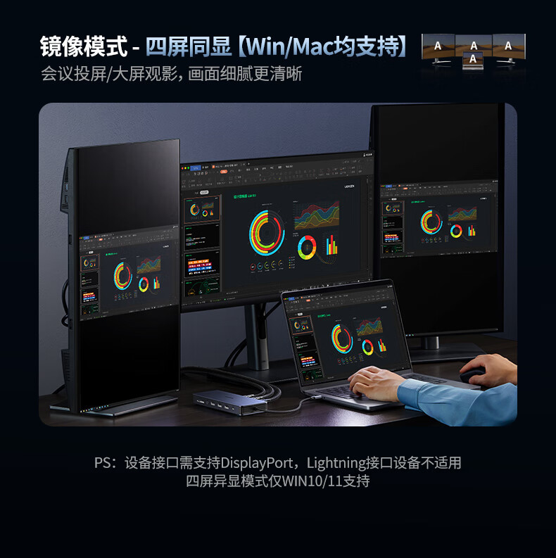 绿联Type-C3.2双HDMI/DP四屏异显扩展坞USB-C雷电4拓展坞10G转接4K60Hz多屏扩展适用联想华为电脑MST