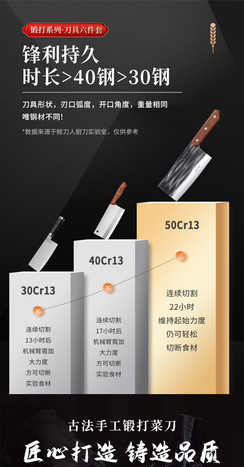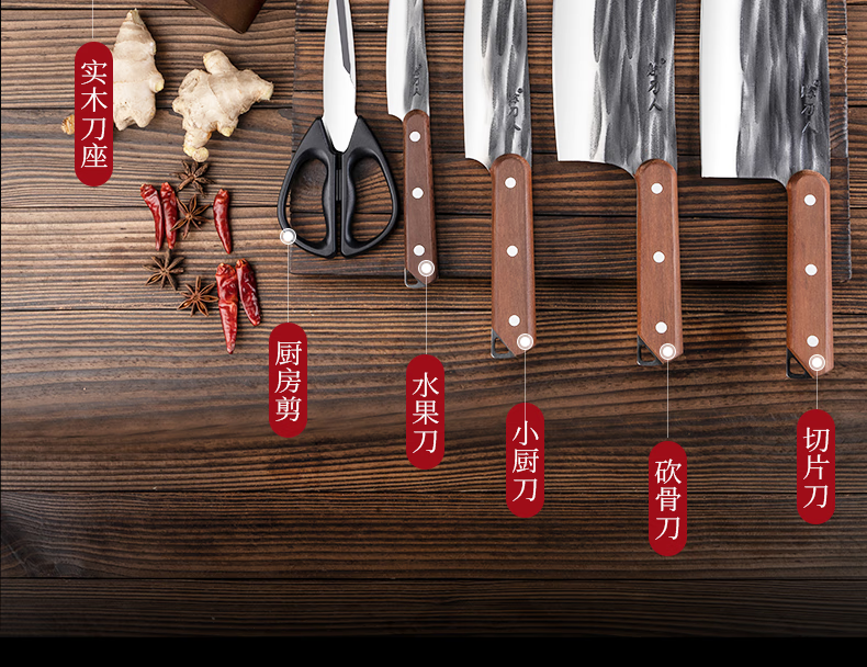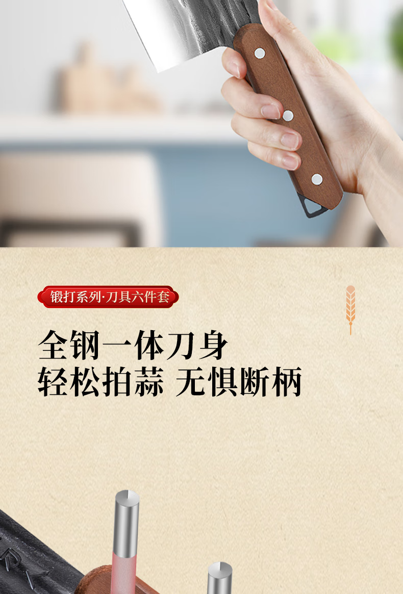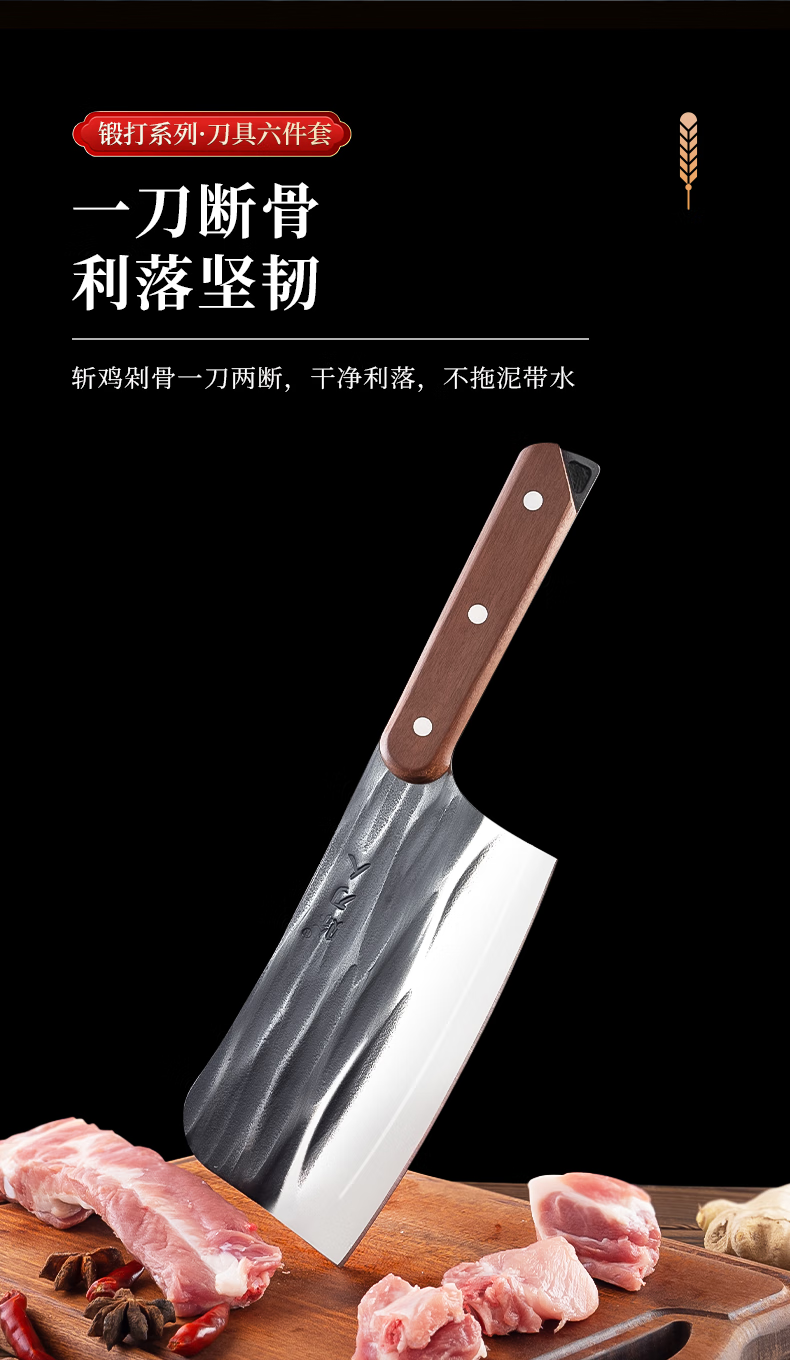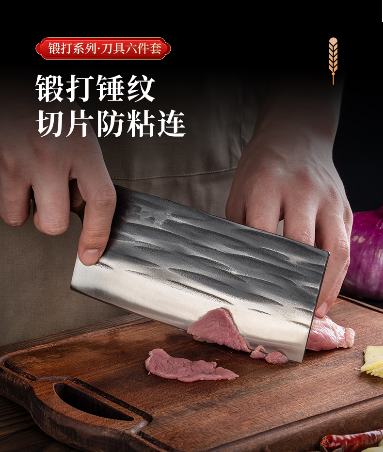 赊刀人菜刀厨房刀具套装手工锻打六件套刀家用古法锻造厨具套装刀具组合