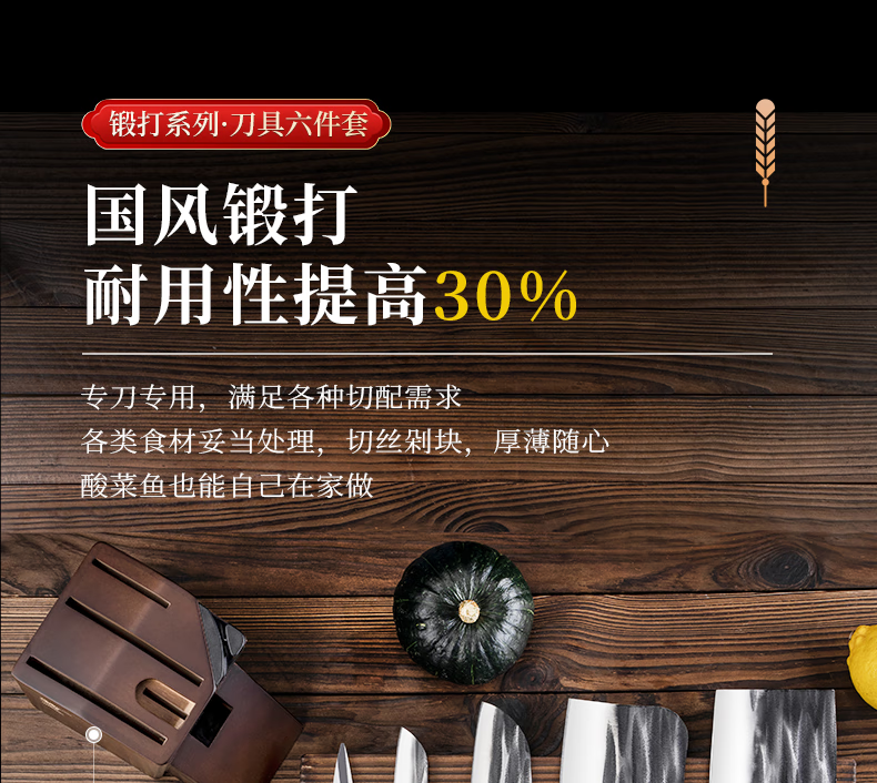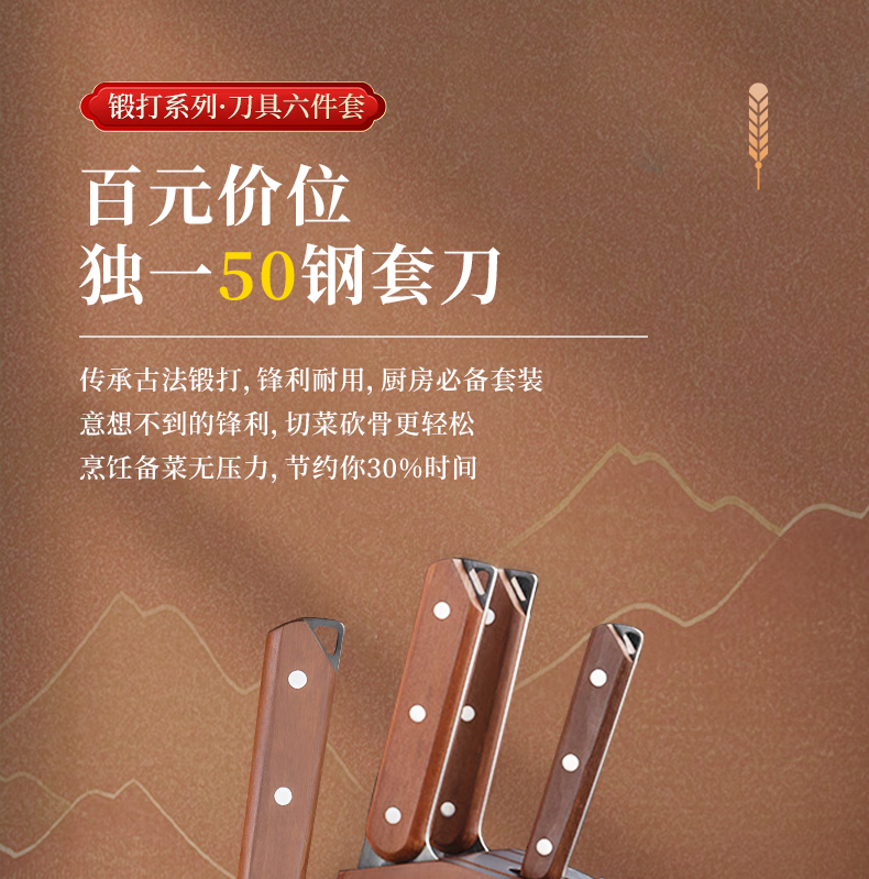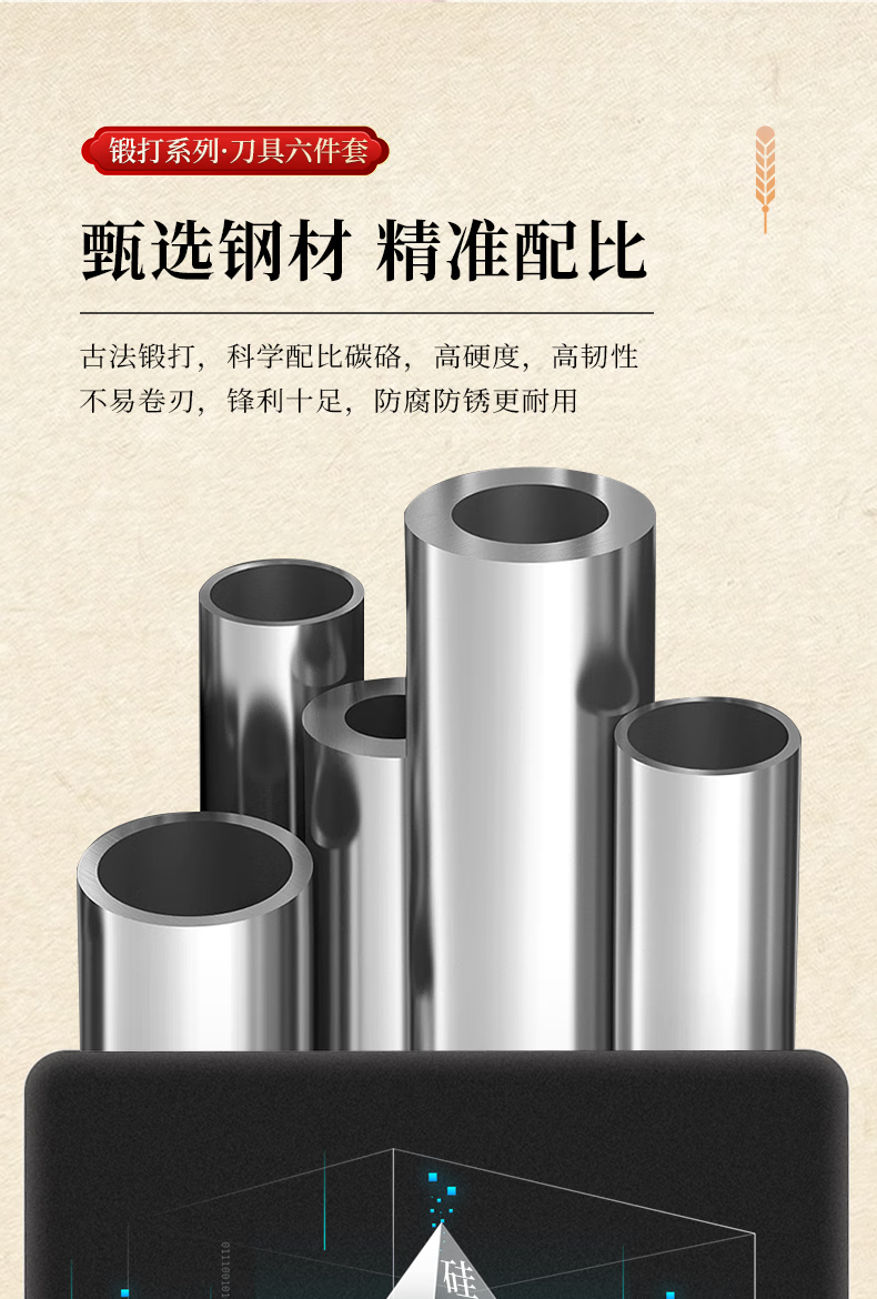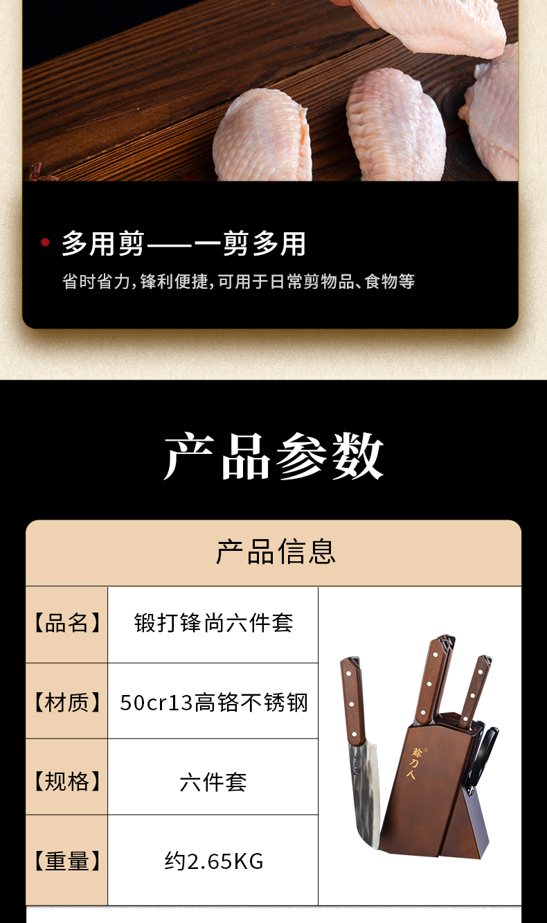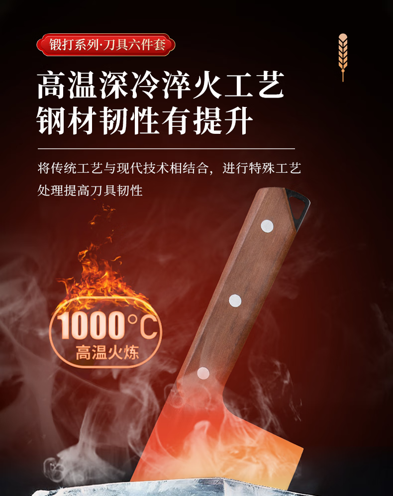 赊刀人菜刀厨房刀具套装手工锻打六件套刀家用古法锻造厨具套装刀具组合