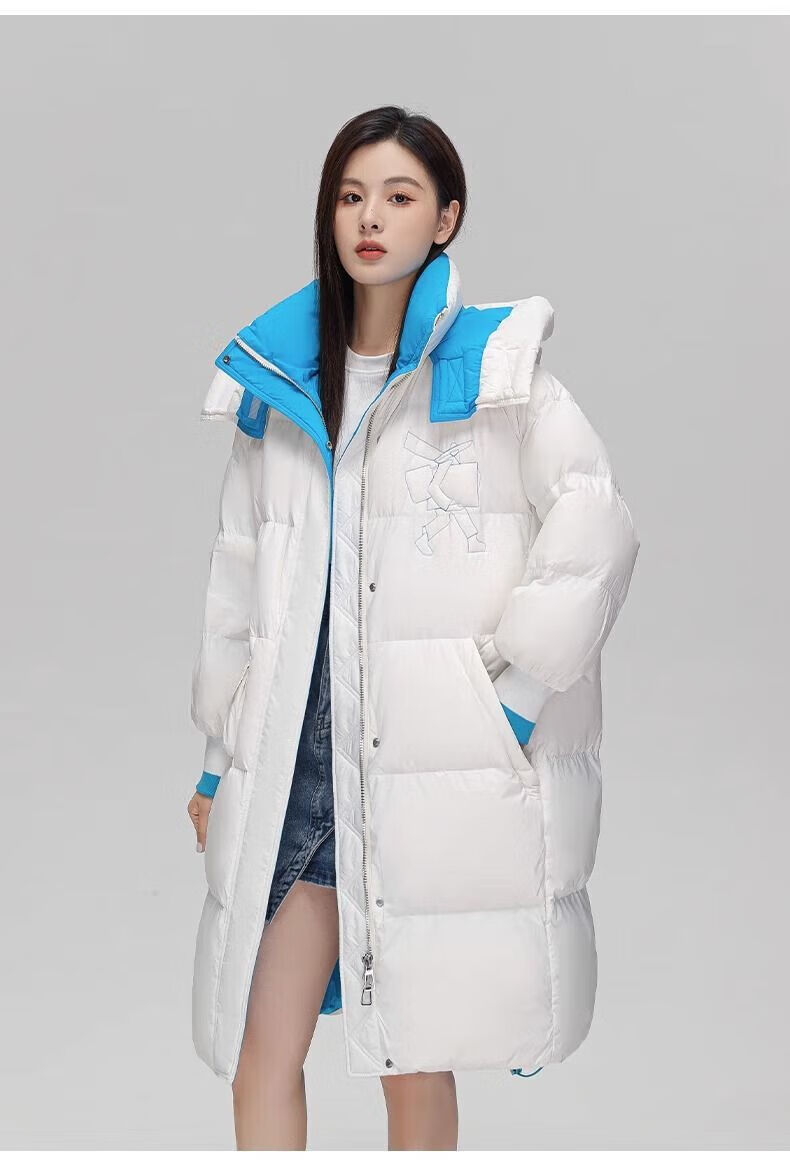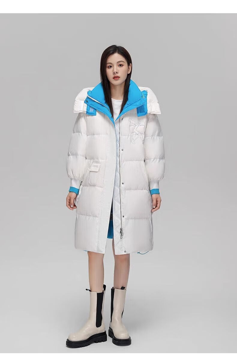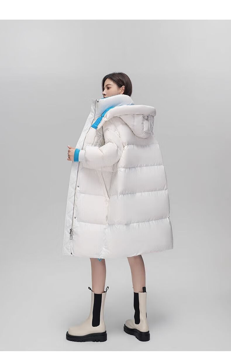 鸭鸭(YAYA)90鸭绒羽绒服女中长款冬季新款时尚休闲户外保暖连帽外套 白色 M 【110-130斤】