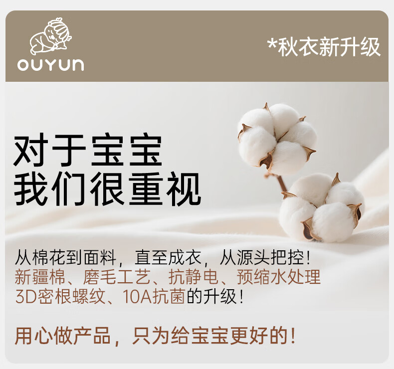 欧孕(OUYUN)宝宝秋衣套装儿童保暖内衣纯棉高腰婴童护肚男童女童秋冬睡衣 天鹅庄园 【高腰护肚 10A抑菌】 80 【建议身高:80cm-90cm】