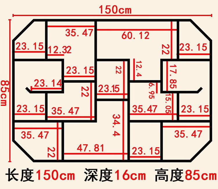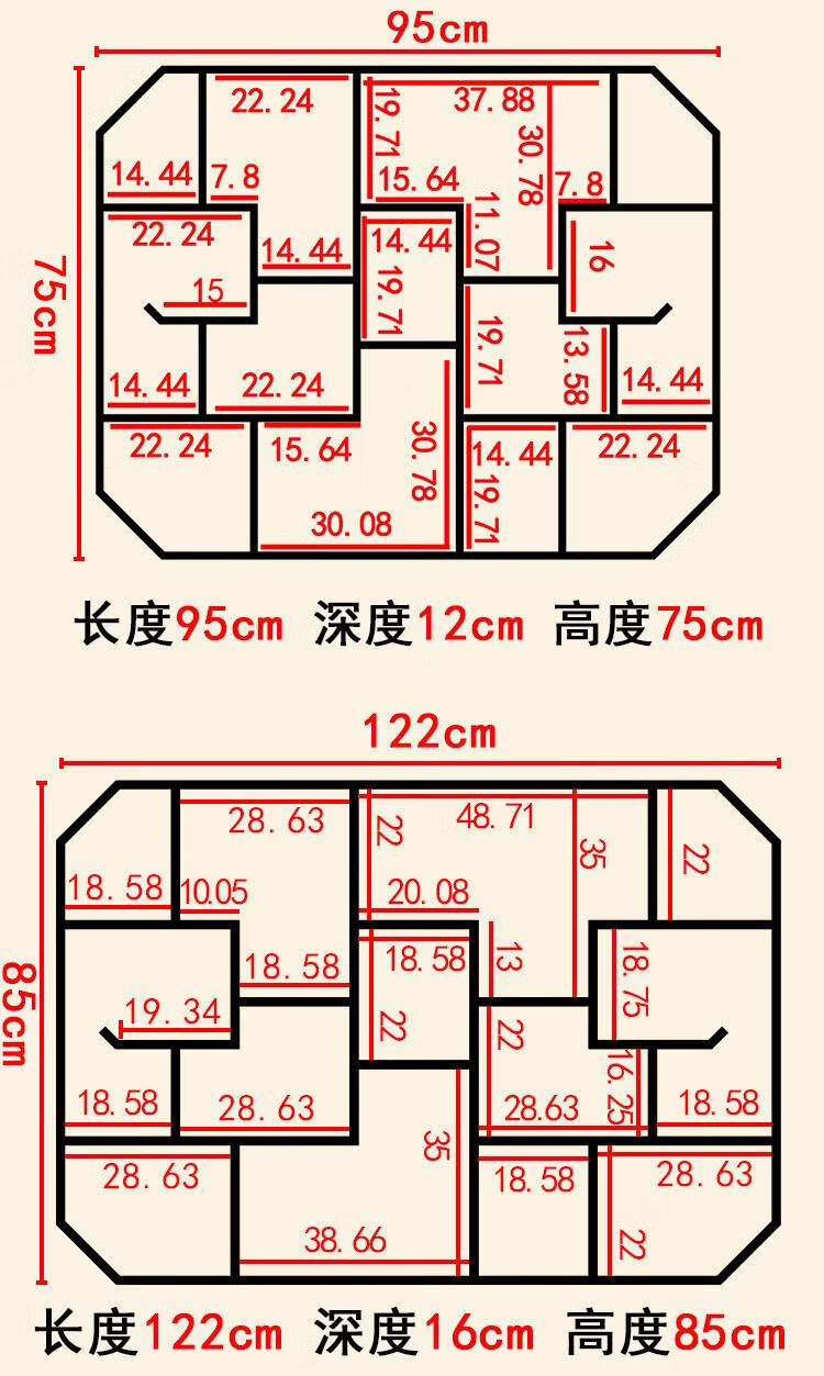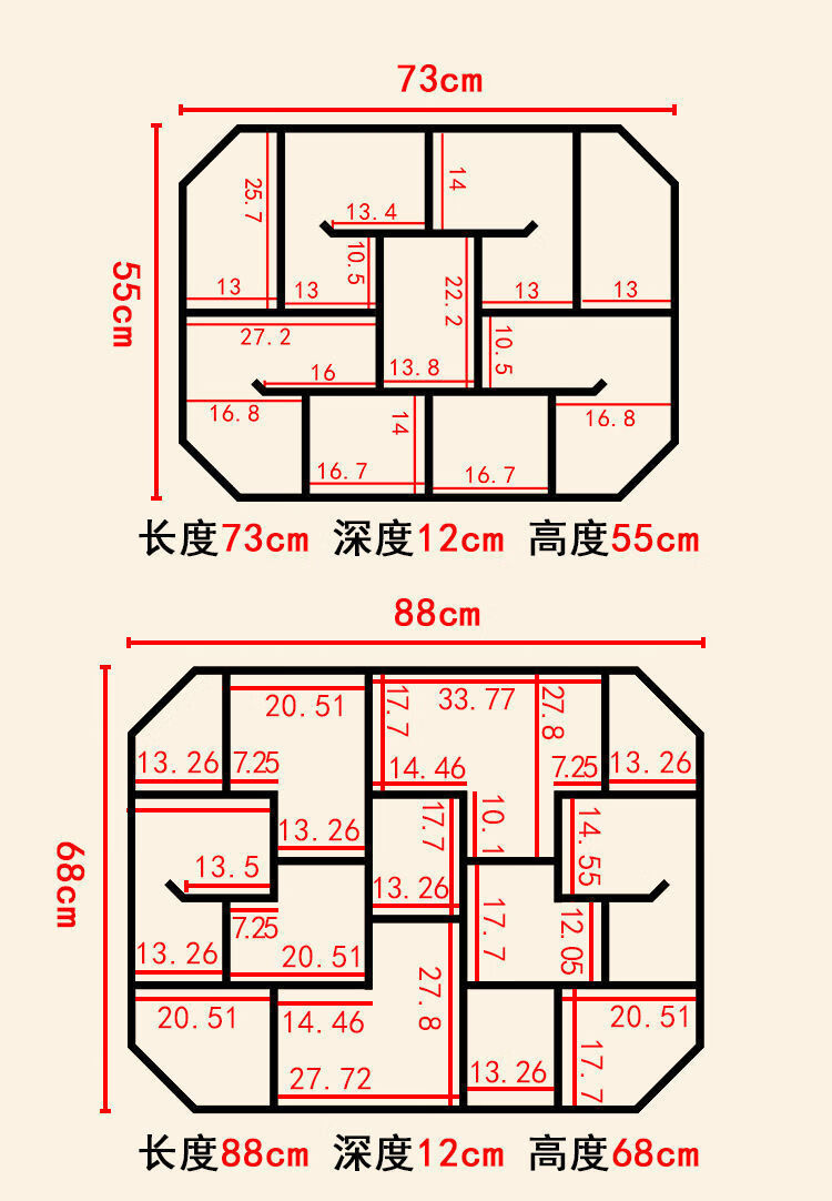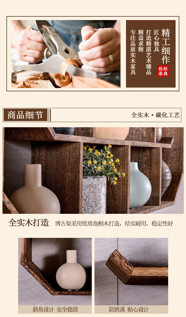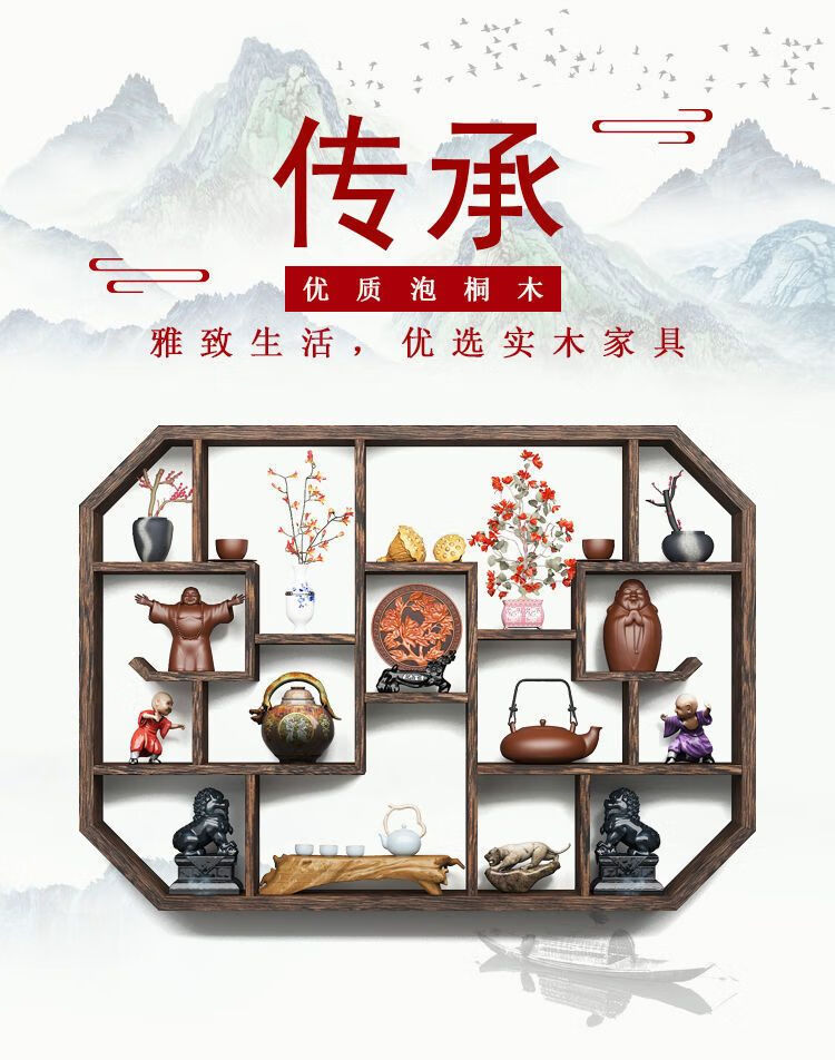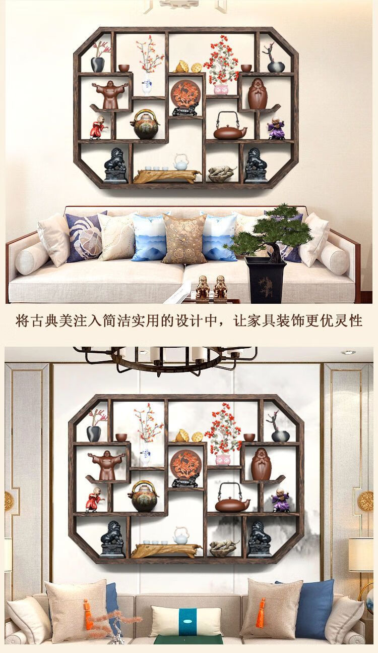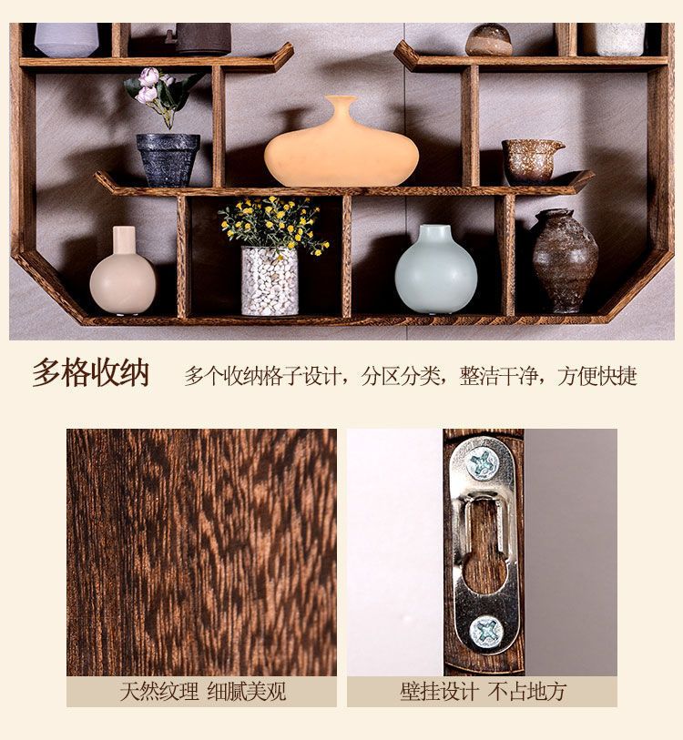 倘然之家博古架实木中式挂墙壁挂式置物架隔断多宝阁格子架摆件简约茶具架 六号 73*12*55