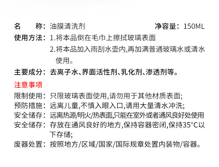 途虎养车汽车玻璃油膜去除剂前挡风玻璃去油膜清洗剂车窗去污清洁剂 去油膜套装: 150ml 5瓶 通用