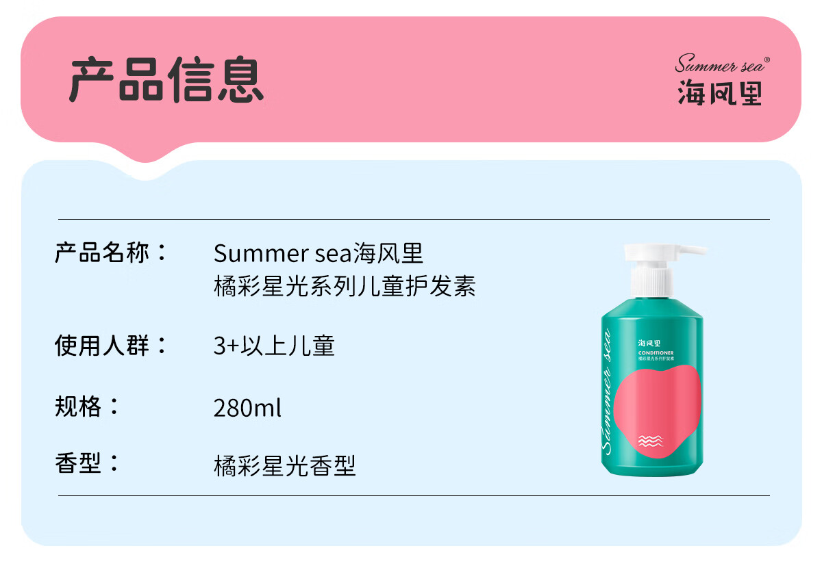 SUMMER SEA海风里青少年护发素280ml 柔顺发丝润发乳 青春期学生男女孩通用