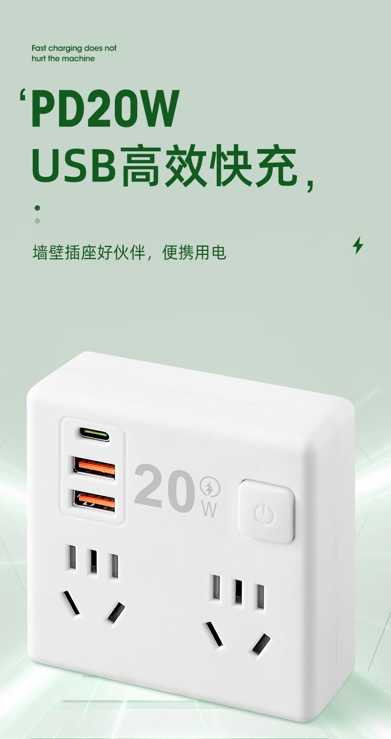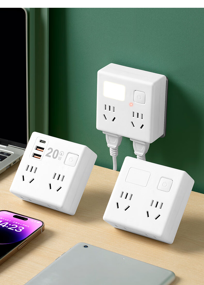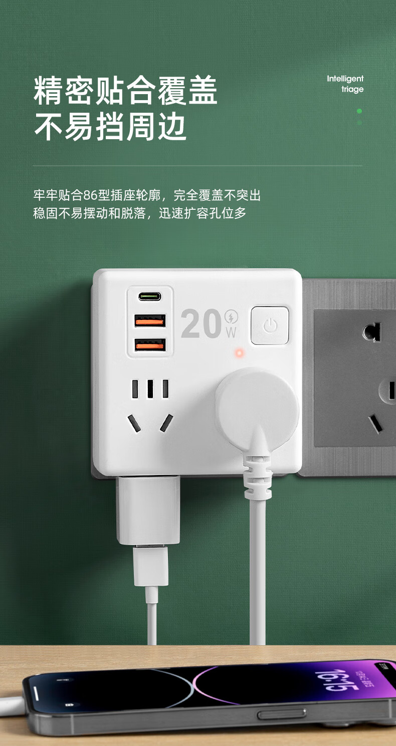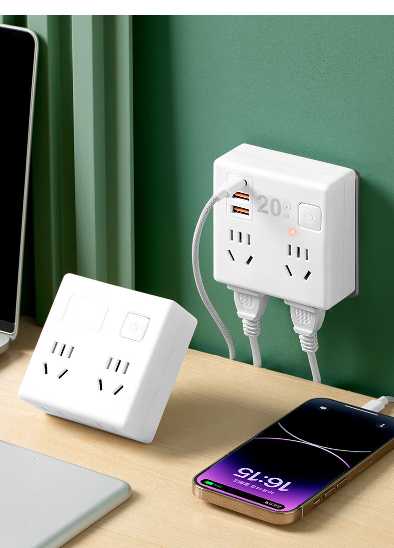 苏士赫尔摩【20W PD快充】86型超薄插座转换器 | 卧室床头一转多无线直插 USB/Type-C多功能插座