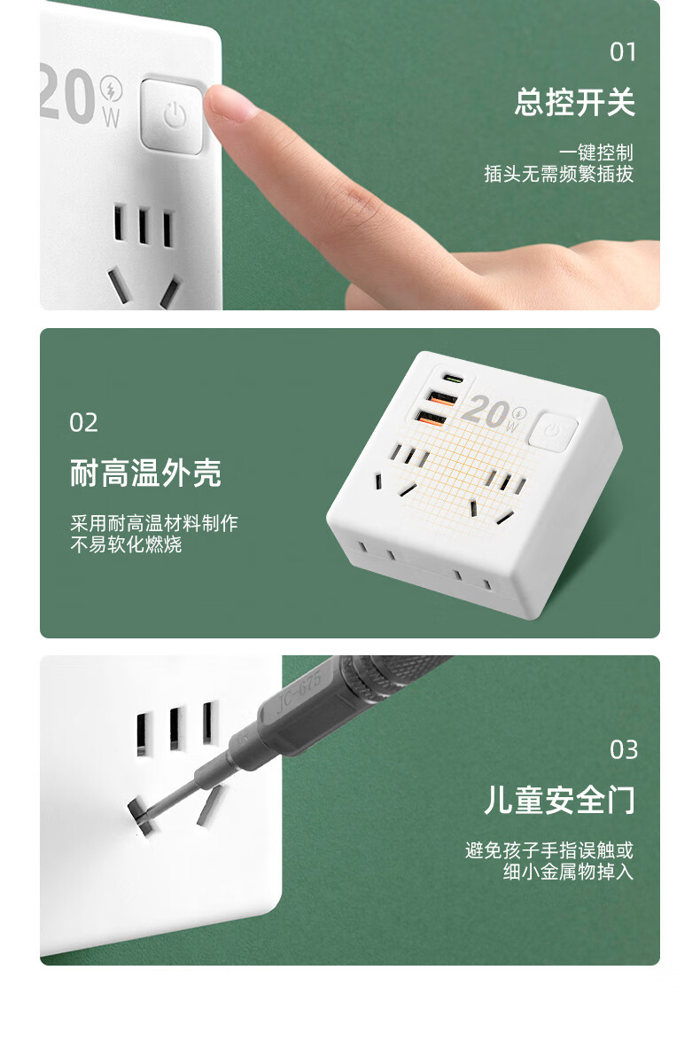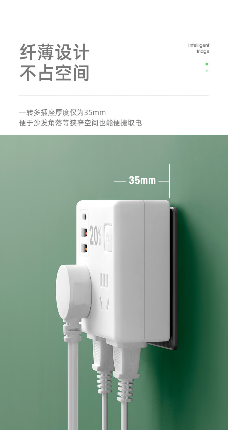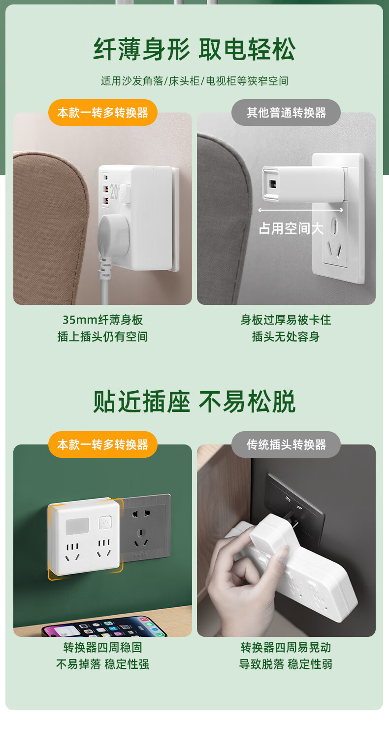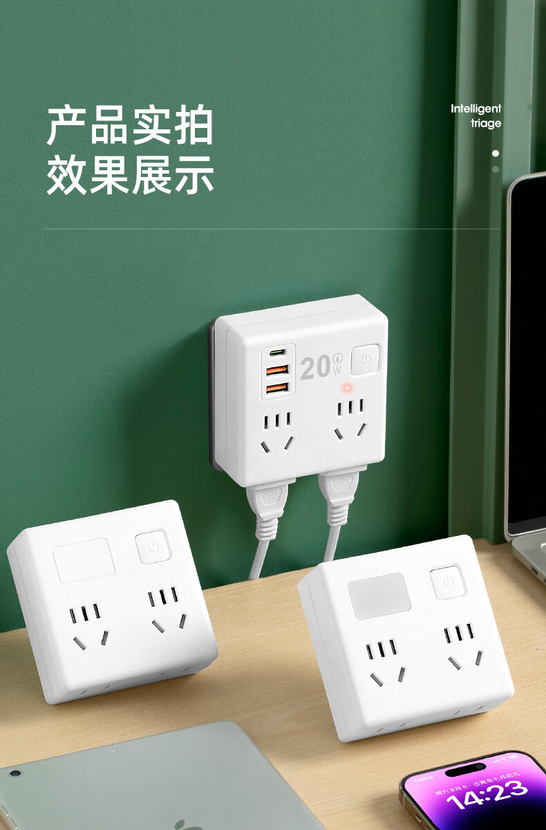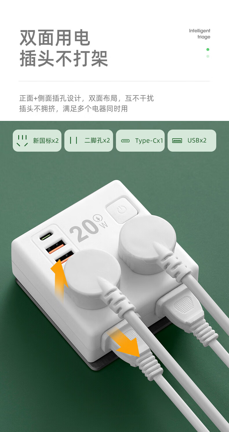 苏士赫尔摩【20W PD快充】86型超薄插座转换器 | 卧室床头一转多无线直插 USB/Type-C多功能插座