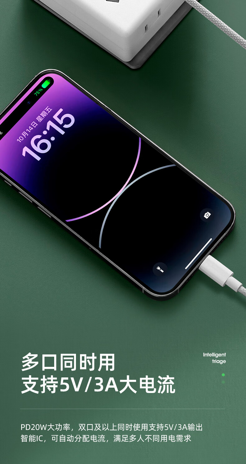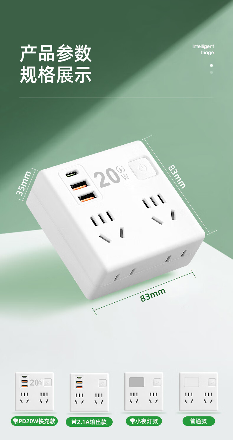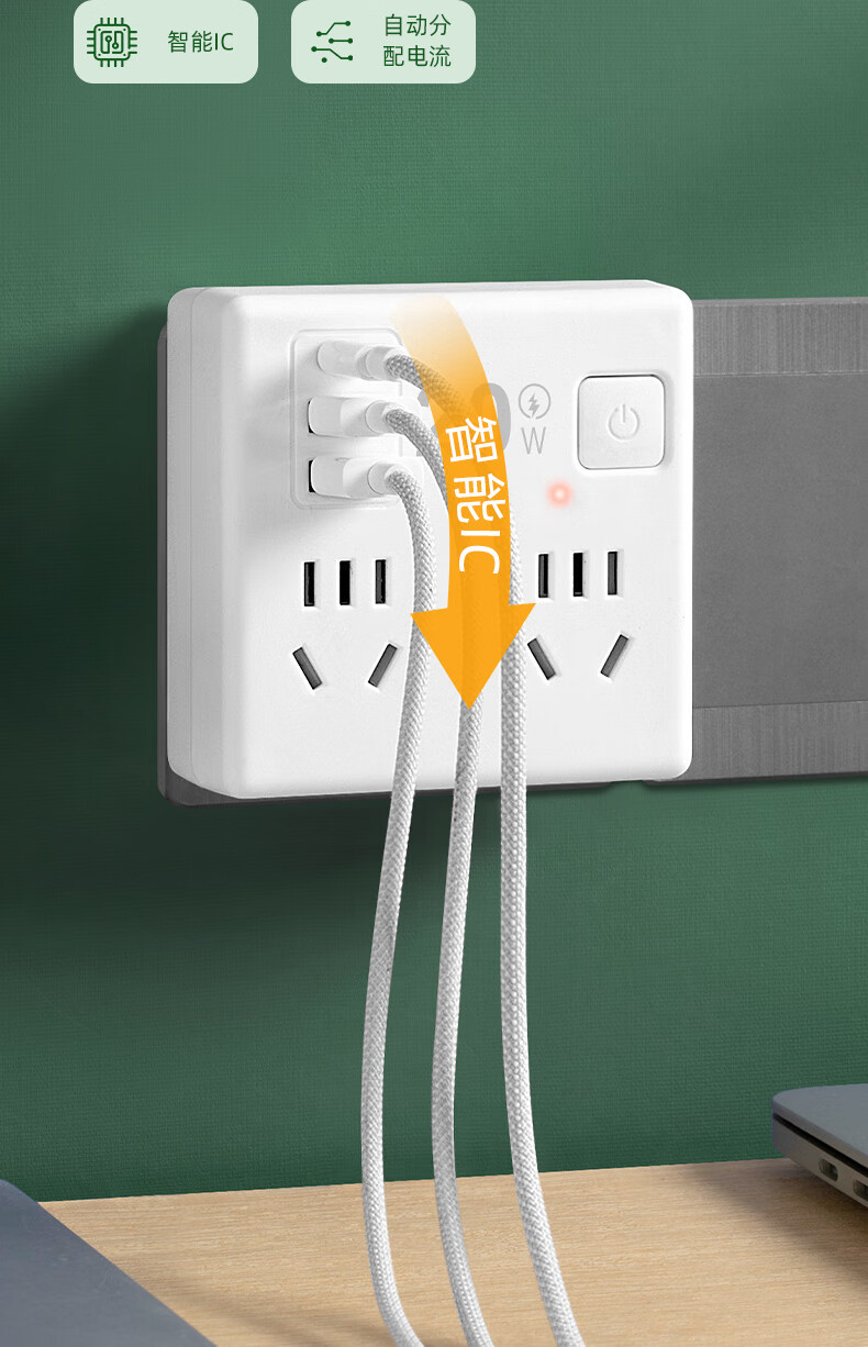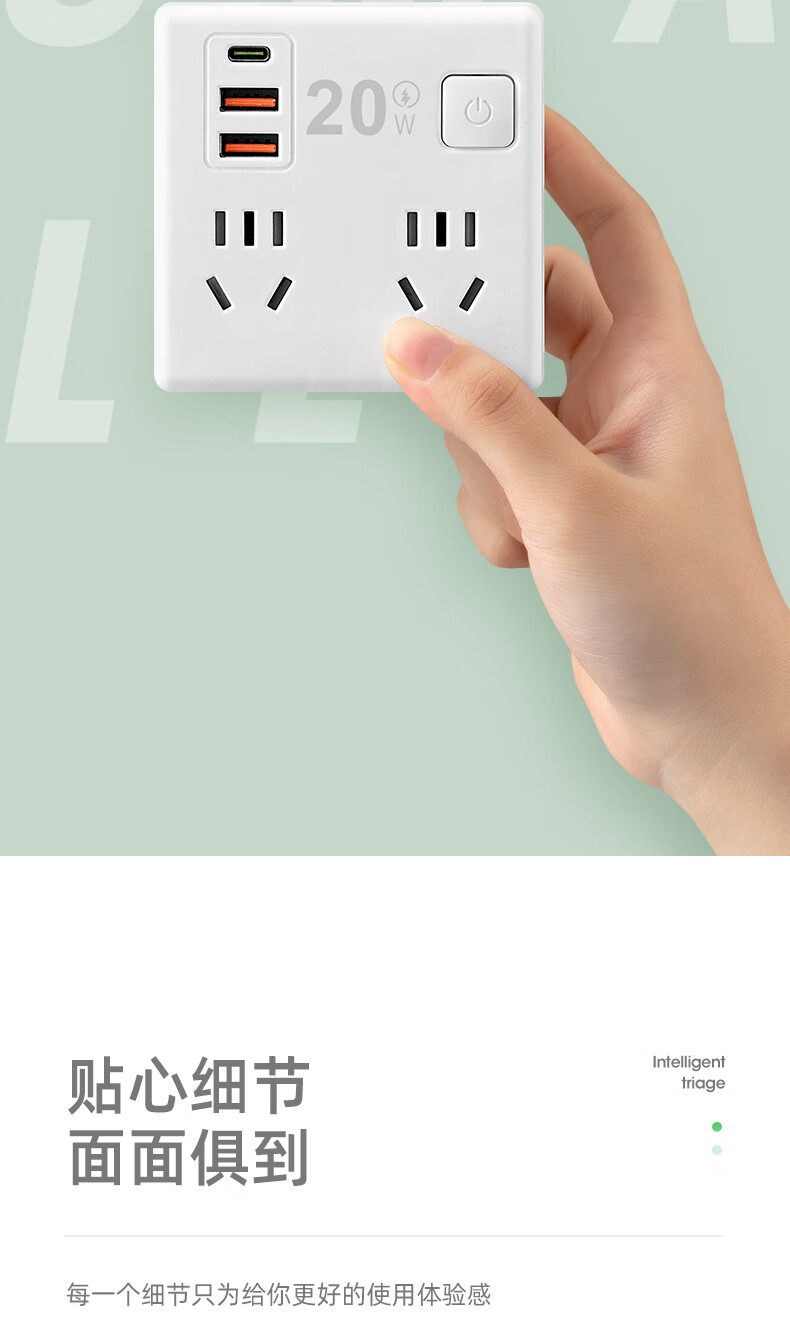 苏士赫尔摩【20W PD快充】86型超薄插座转换器 | 卧室床头一转多无线直插 USB/Type-C多功能插座
