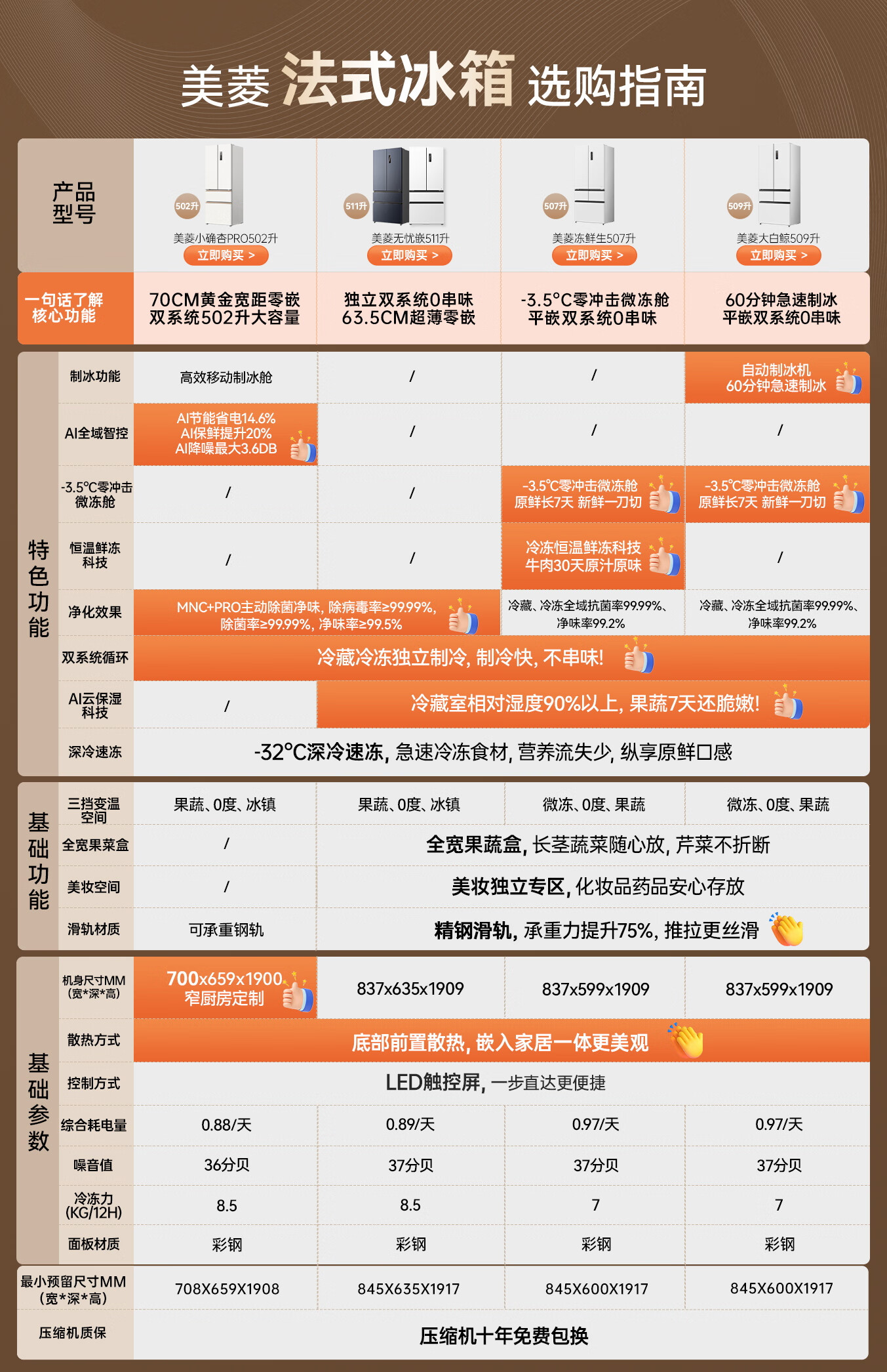 美菱(MeiLing)冻鲜生507升恒温鲜冻法式超薄嵌入家用冰箱双系统双循环一级能效国家补贴BCD-507WPU9CDZX冰川白