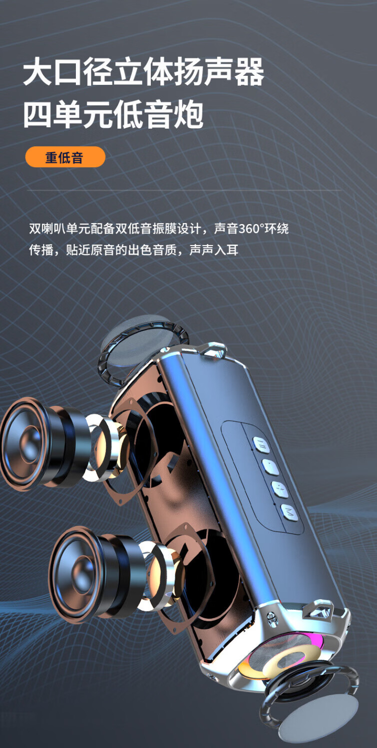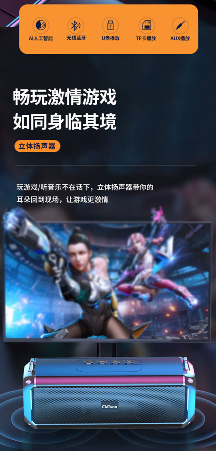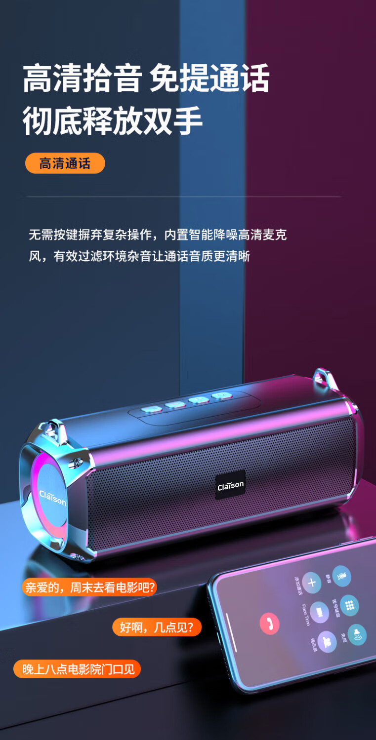 CLAISON【柏林之声】T16蓝牙音箱音响重低音炮家庭户外便携式桌面电脑无线音响防水可插卡超长续航 黑色