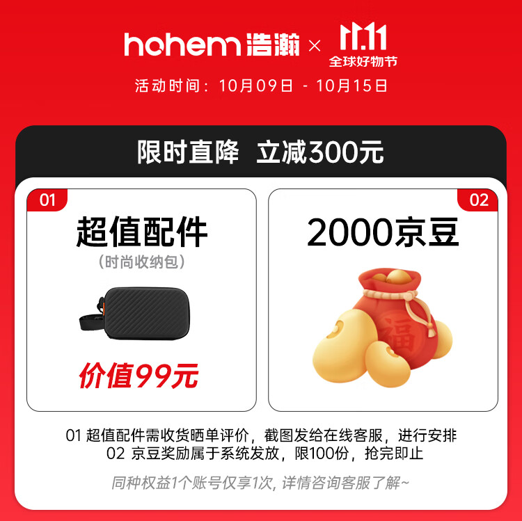 浩瀚卓越(hohem)V3Ultra手机云台稳定器手持云台三轴防抖手机支架自拍杆vlog便携旅游拍照神器 2年质保