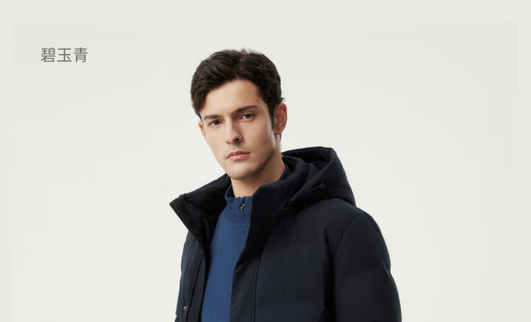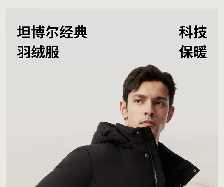 坦博尔羽绒服男可脱卸帽宽松大码男士商务保暖外套510505D 碧玉青 175