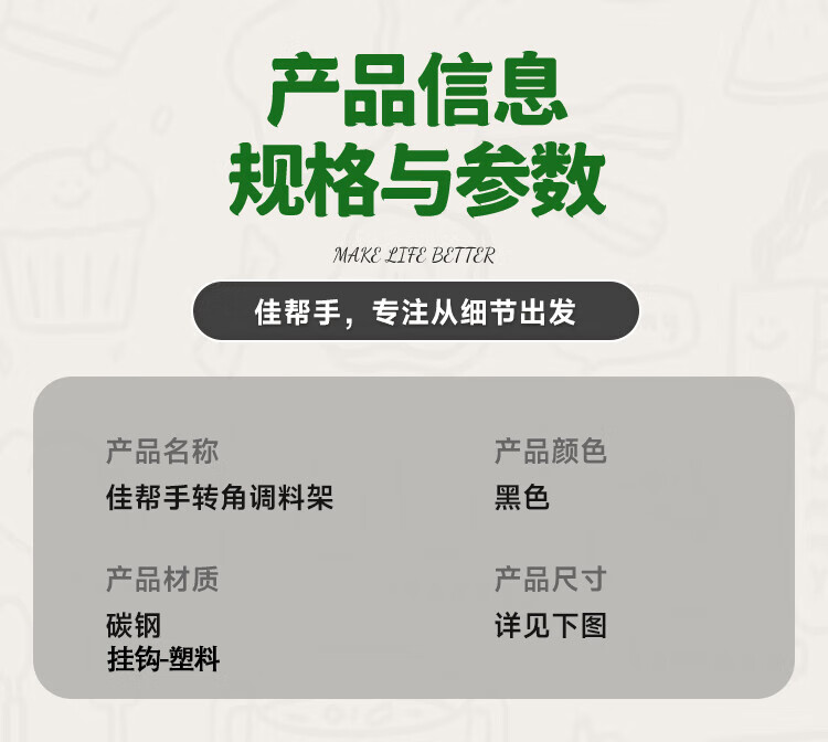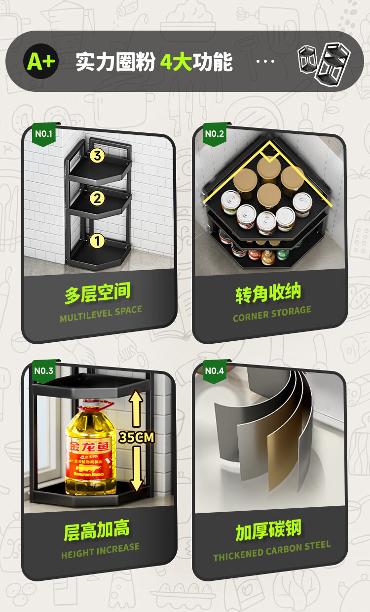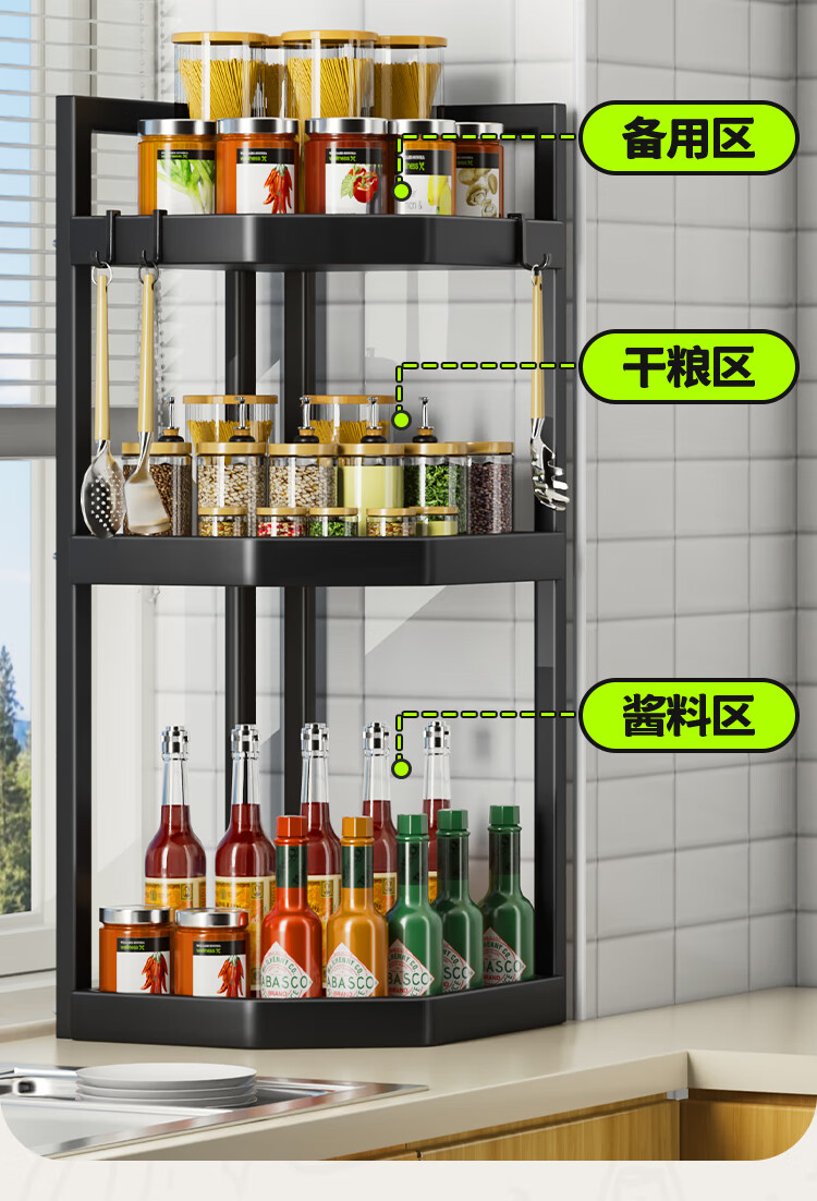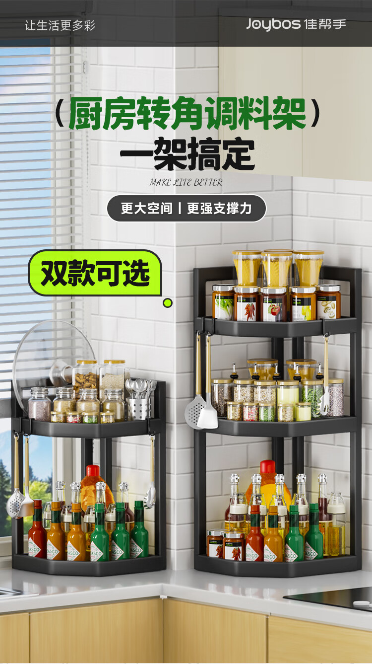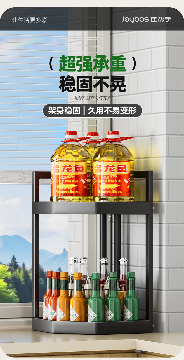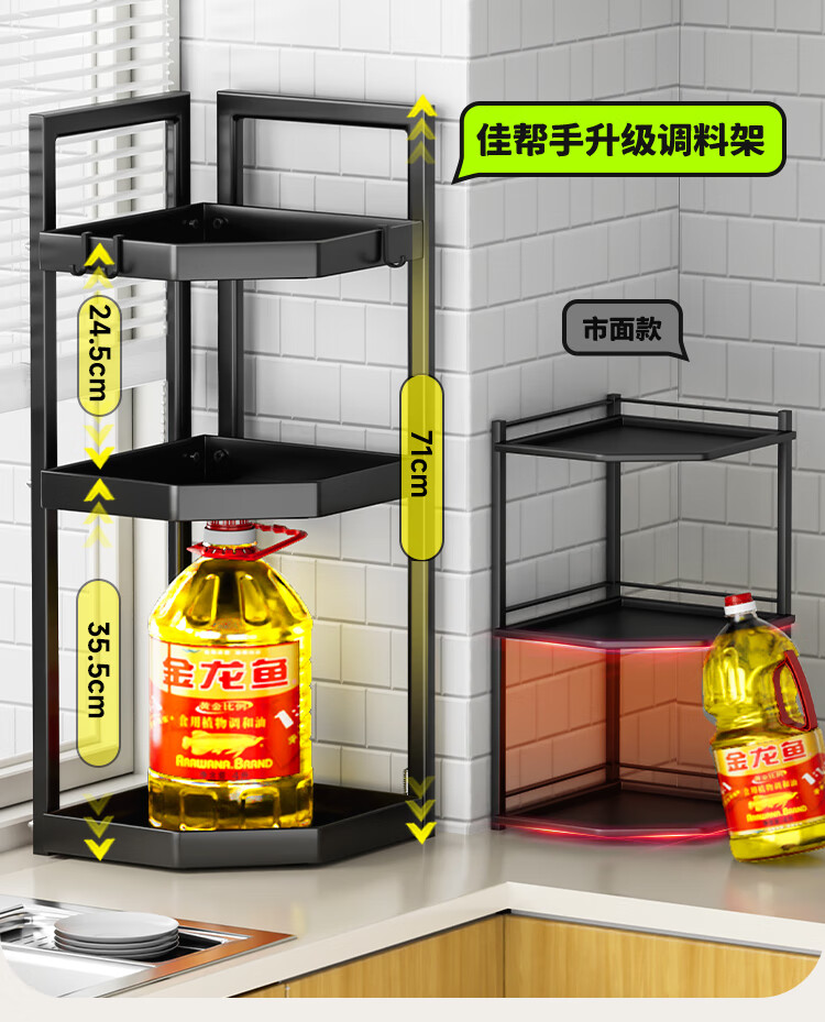 佳帮手厨房置物架转角多功能调料架台面调味罐收纳架中号2层