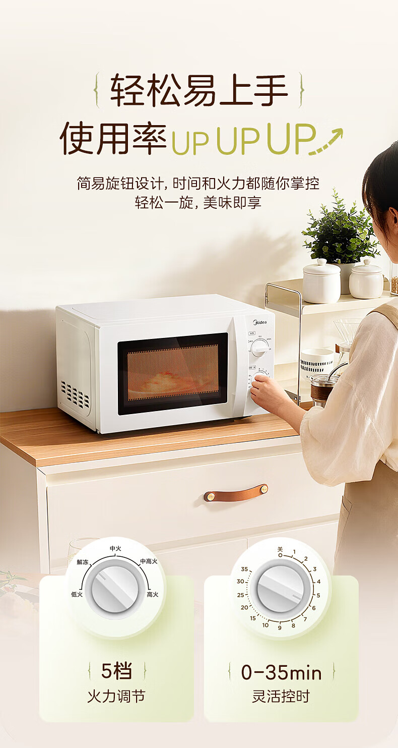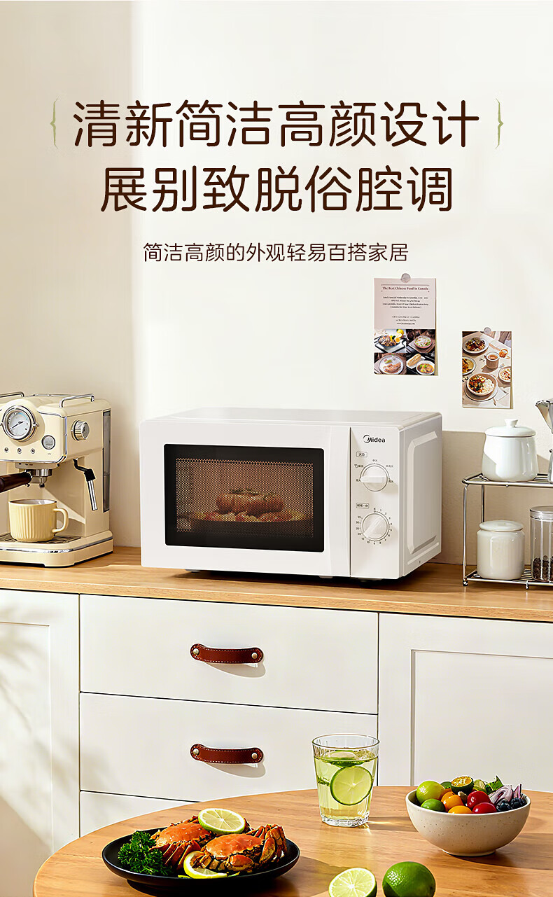 美的微波炉家用快捷小型 700W 容量20L 360°均匀加热 旋钮操控 易清洁 M1-L213B 经典款