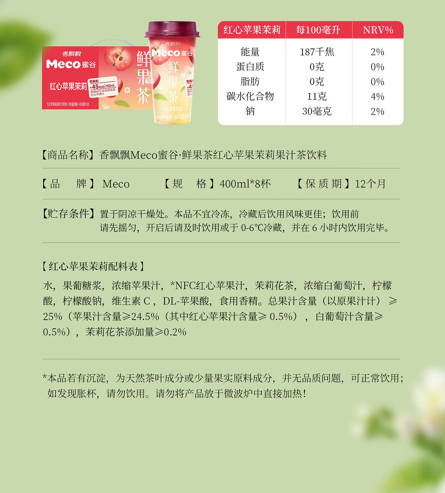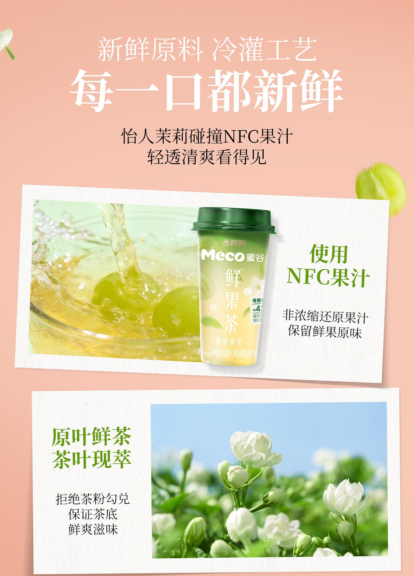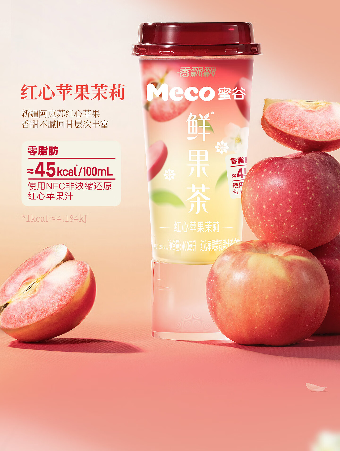 香飘飘Meco鲜果茶 0脂肪采用NFC果汁原叶现萃茉莉下午茶饮料整箱 苹果茉莉味 400mL*8杯