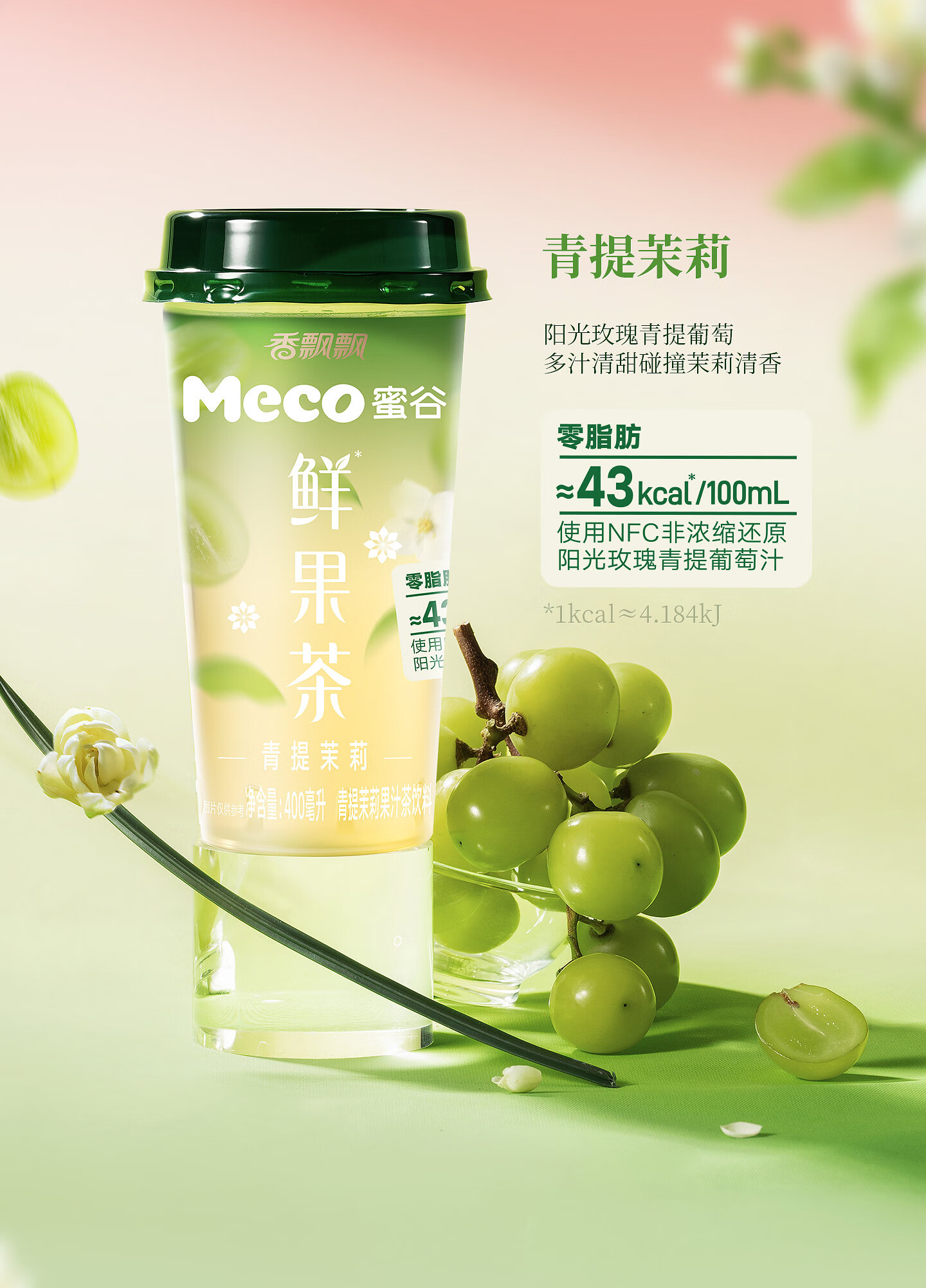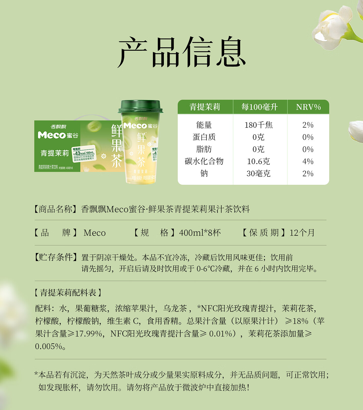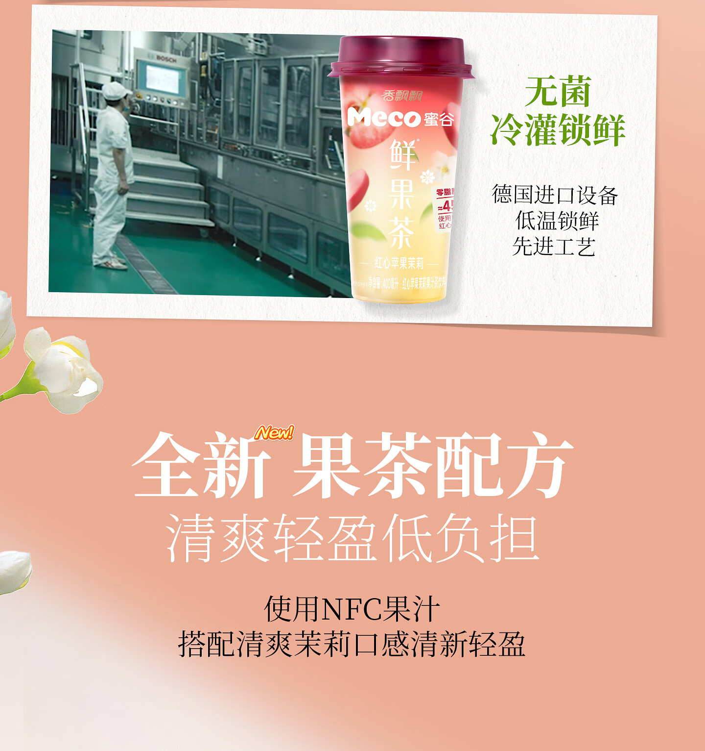 香飘飘Meco鲜果茶 0脂肪采用NFC果汁原叶现萃茉莉下午茶饮料整箱 苹果茉莉味 400mL*8杯