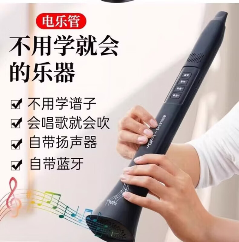 丁家彭雯璟全自动电乐管自带蓝牙扬声器新款不用学就会的乐器吹笛子演奏 电乐管【无损音质】黑色