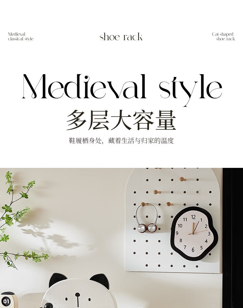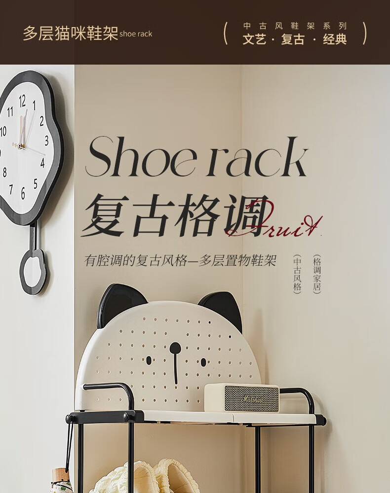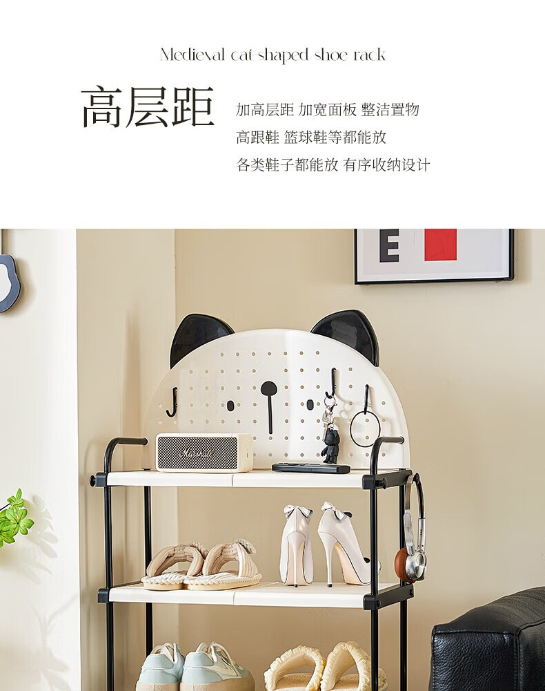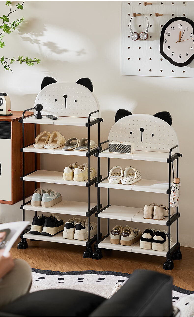 百易特猫咪落地鞋架玄关收纳家用门口多层鞋架入户鞋柜宿舍收纳置物架 多功能鞋架-5层