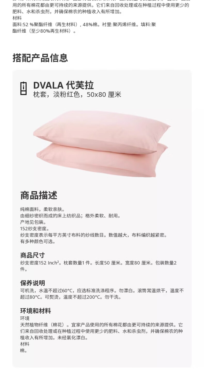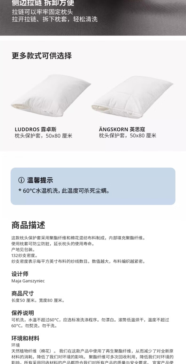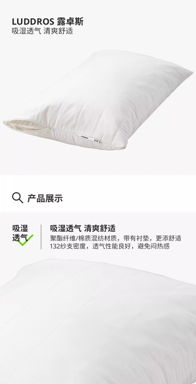 宜家(IKEA)LUDDROS露卓斯白色枕套卧室用单个装学生宿舍单人枕头保护套