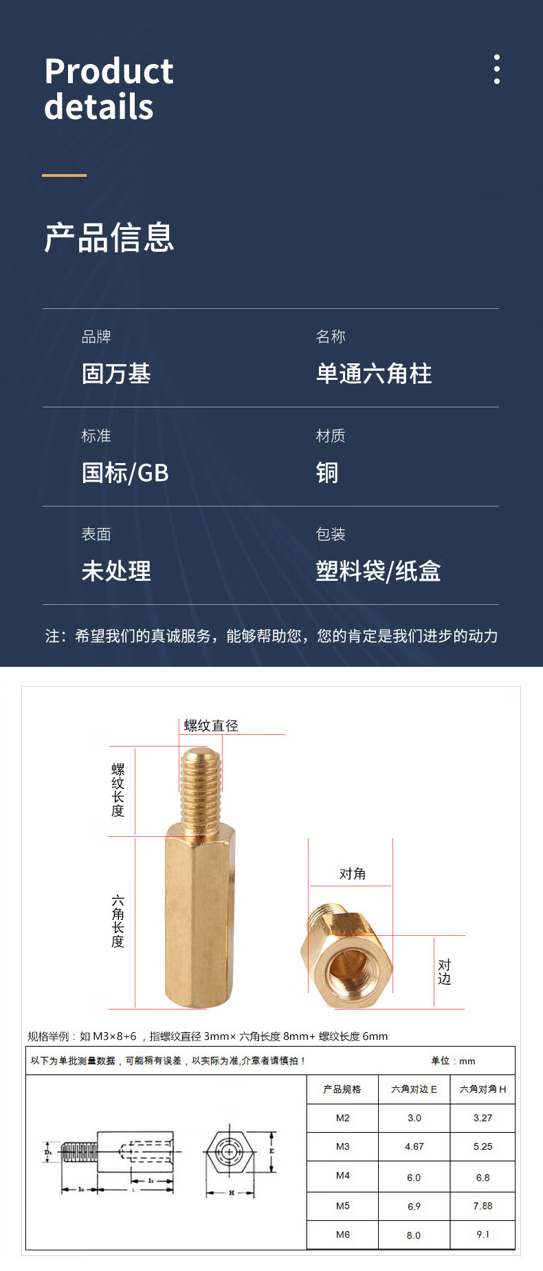 GUWANJIM2M2.5M3mm六角铜柱单头铜螺柱机箱主板螺丝柱隔离柱电路板接线柱 M4x7+6(20粒)