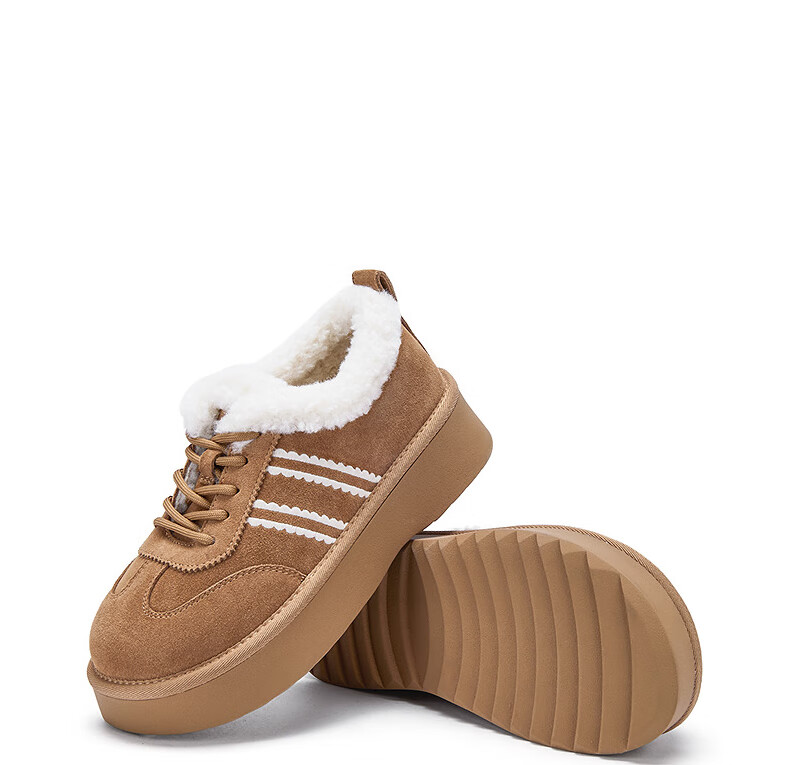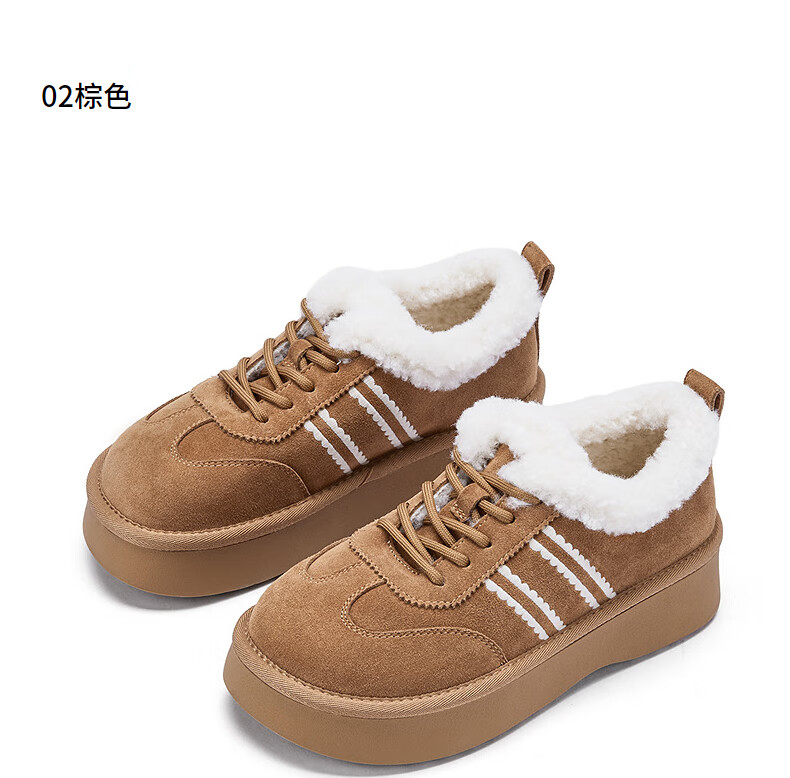 热风加绒雪地靴女鞋2025年冬季新款舒适休闲毛毛鞋厚底户外棉鞋 02棕色 39