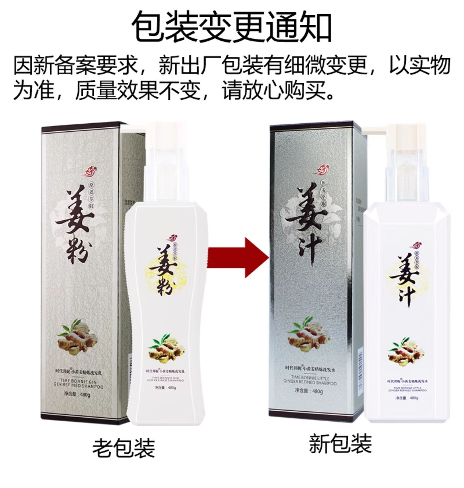 BONYHAIR时代邦妮姜粉小黄姜精炼洗发乳生姜汁洗发水去屑控油止痒强根健发 姜汁小黄姜精炼洗发乳 480g*1瓶
