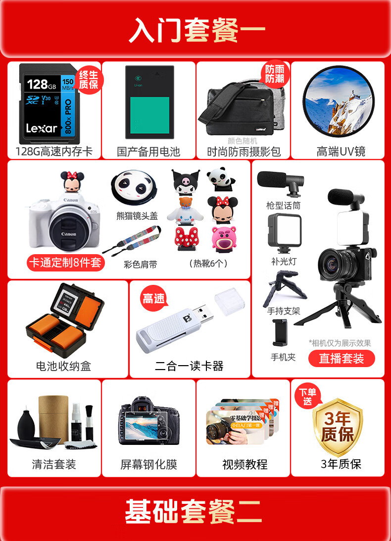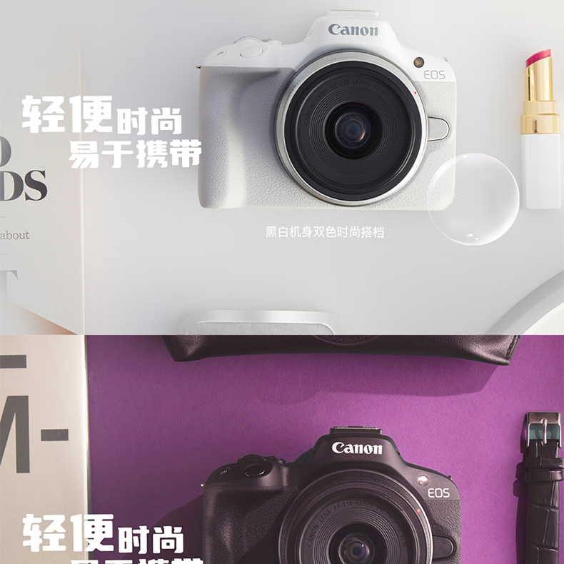 佳能(Canon)r50微单相机 4K数码高清旅游vlog视频学生美颜 R50入门级直播相机 R50白色18-45 STM镜头套机 官方标配【不含内存卡基础配件 推荐购买套餐】
