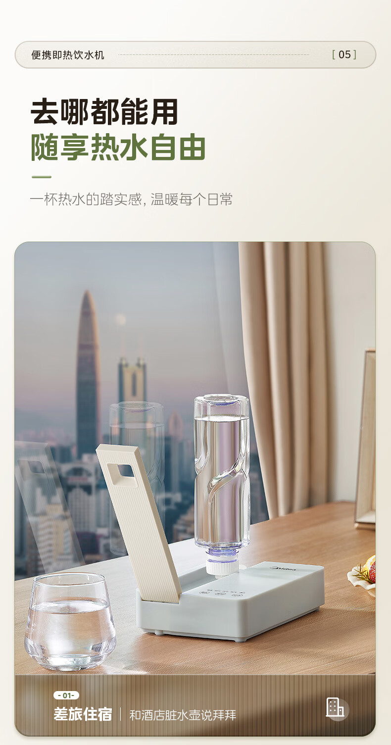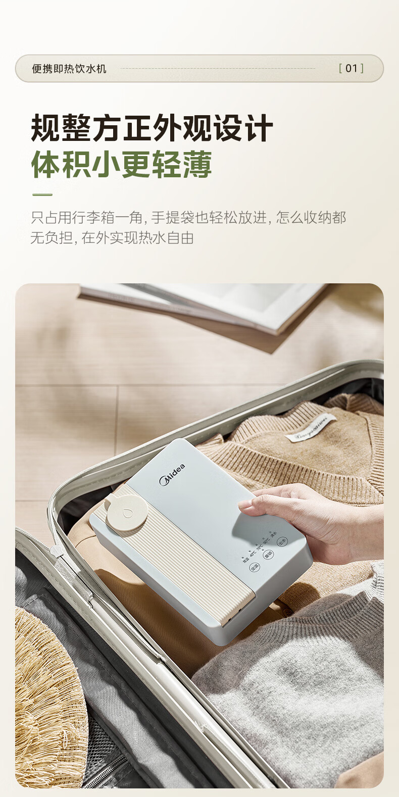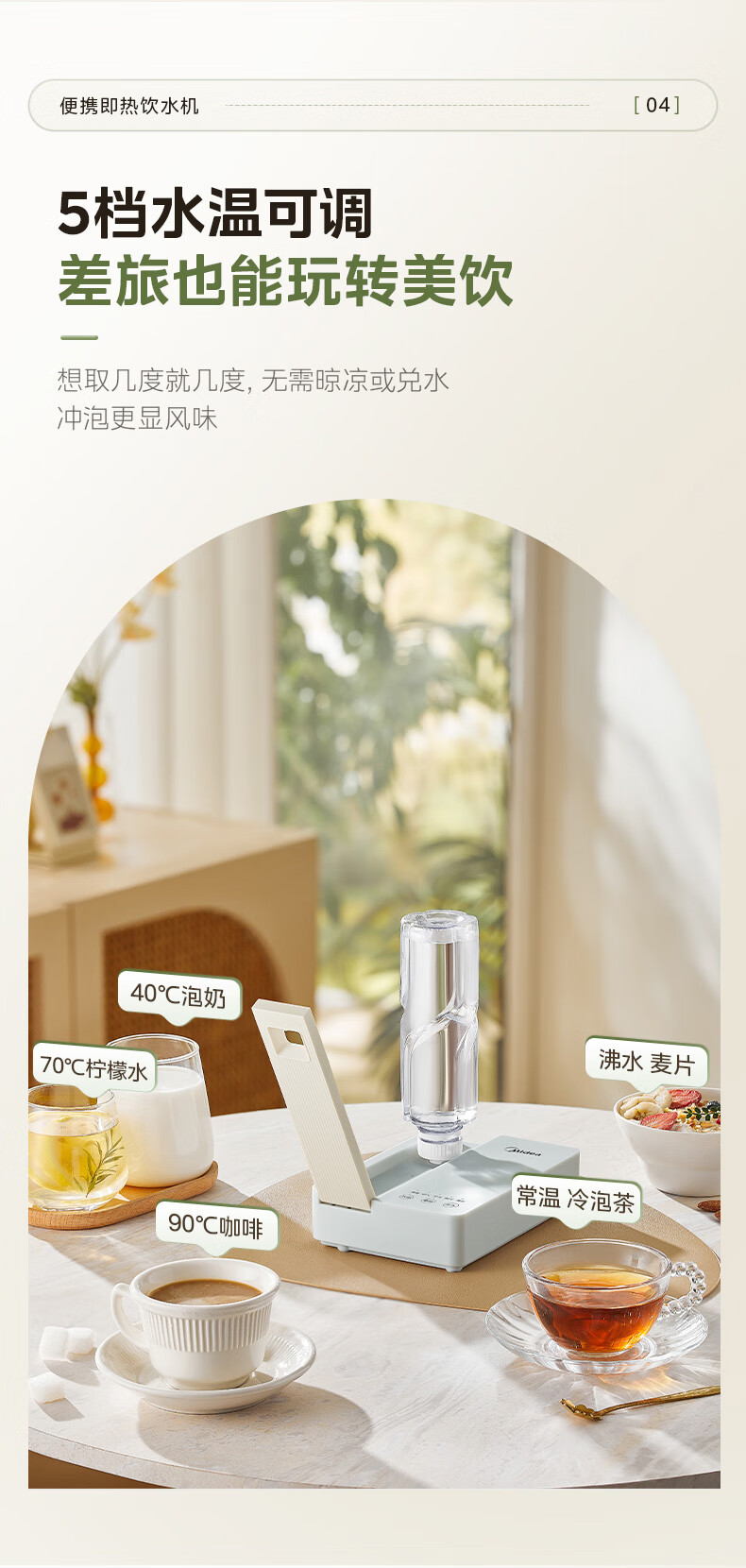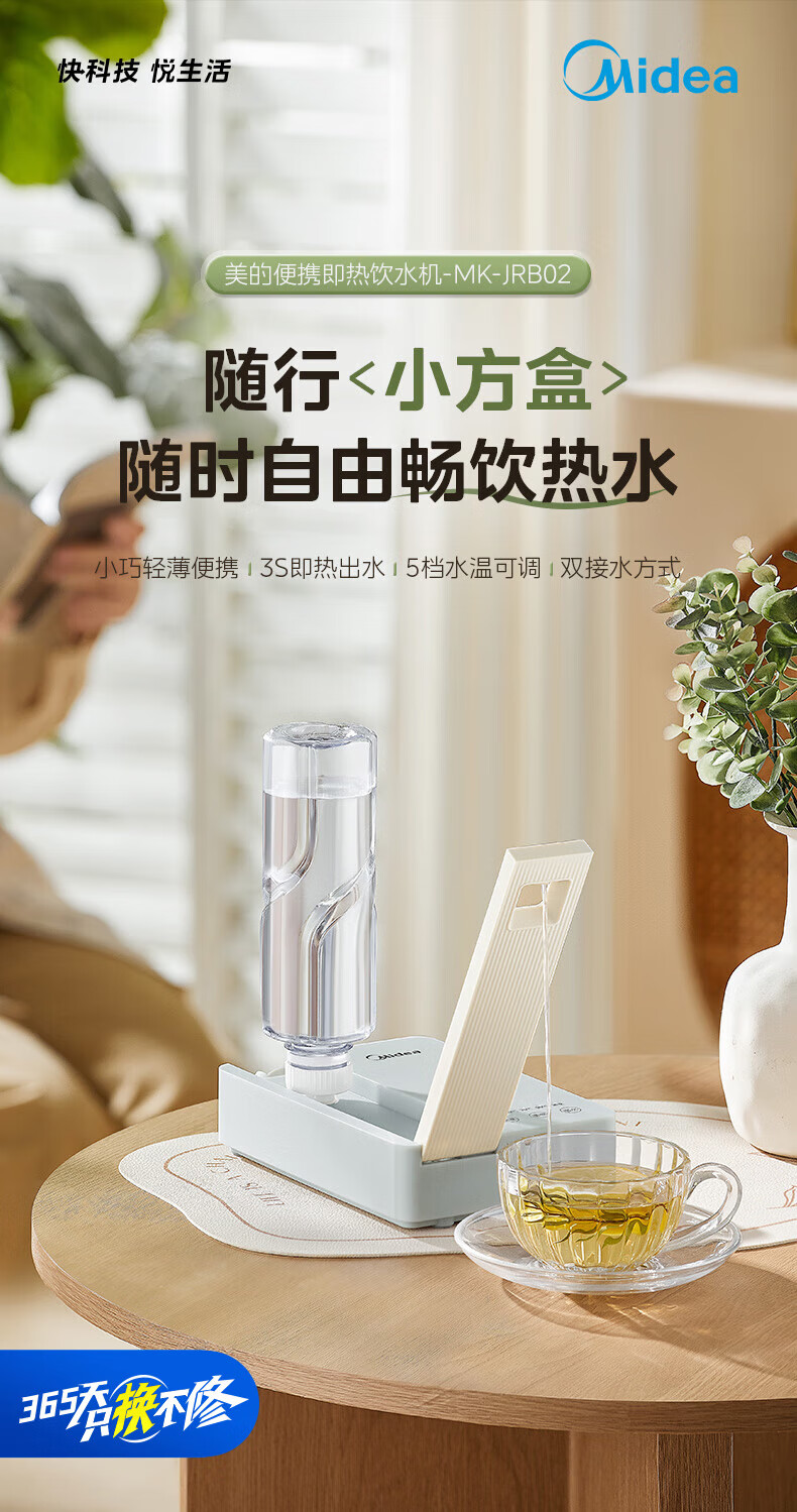 美的(Midea)便携式烧水壶 即热式饮水机 电热水壶 折叠出差旅行桌面家用迷你速热直饮机恒温 国家补贴JRB02