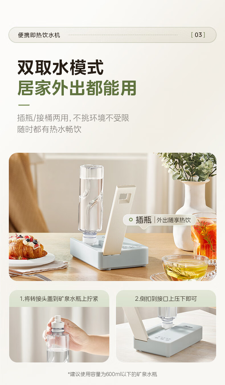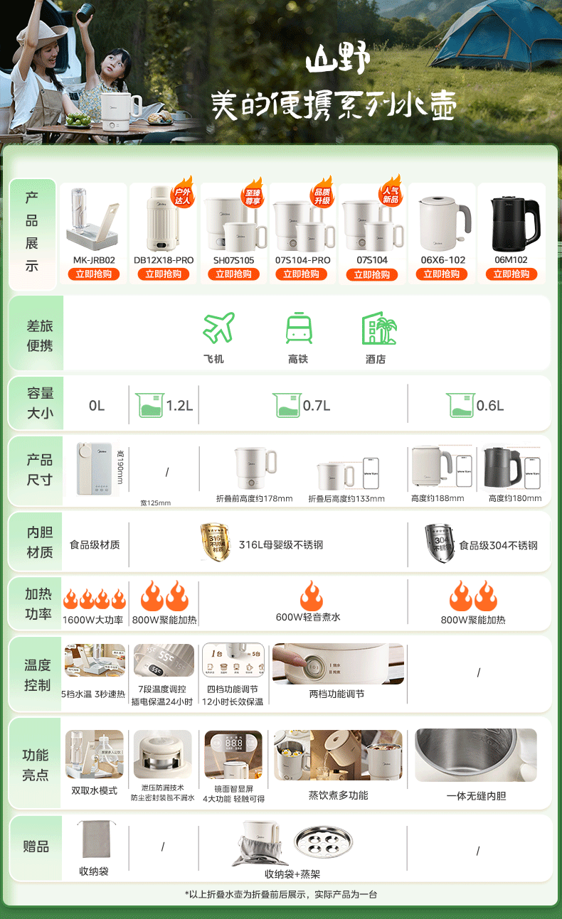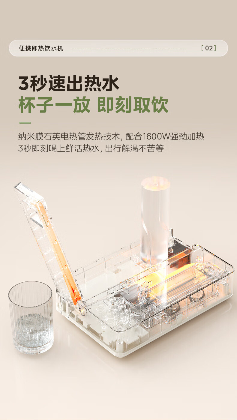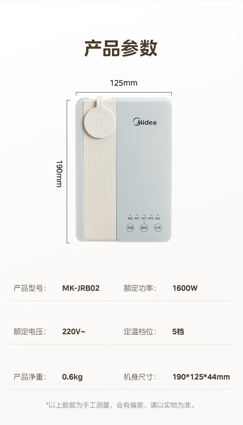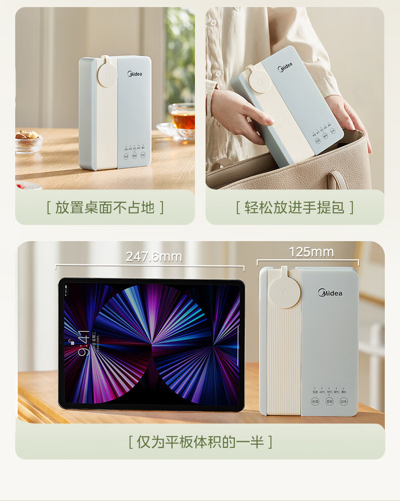 美的(Midea)便携式烧水壶 即热式饮水机 电热水壶 折叠出差旅行桌面家用迷你速热直饮机恒温 国家补贴JRB02