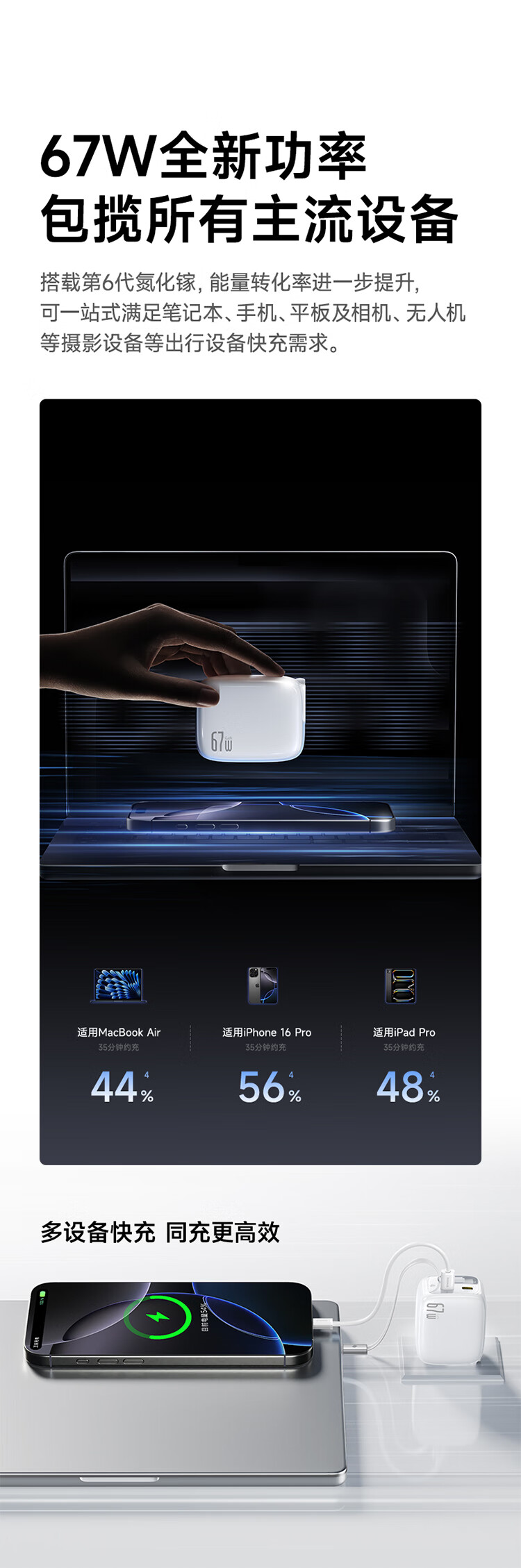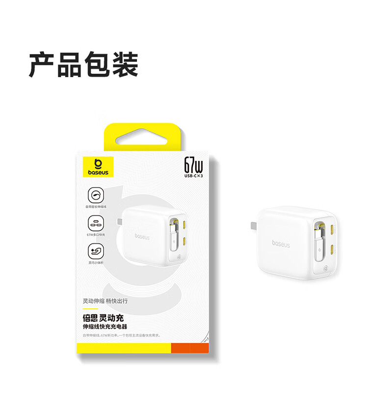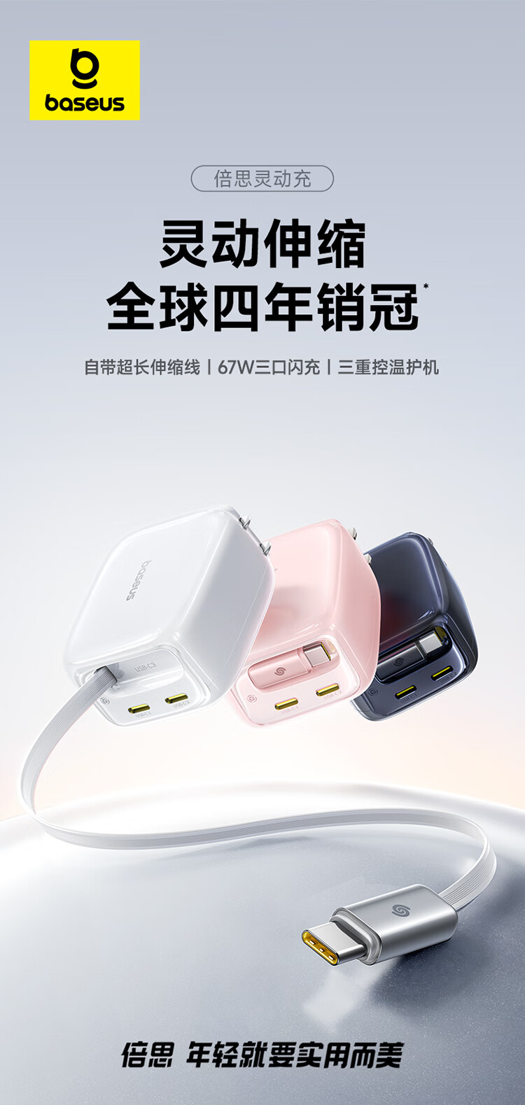 倍思灵动充【67W自带线】氮化镓充电器65W快充头适用苹果17/16三星华为MacbookPro联想笔记本电脑 粉