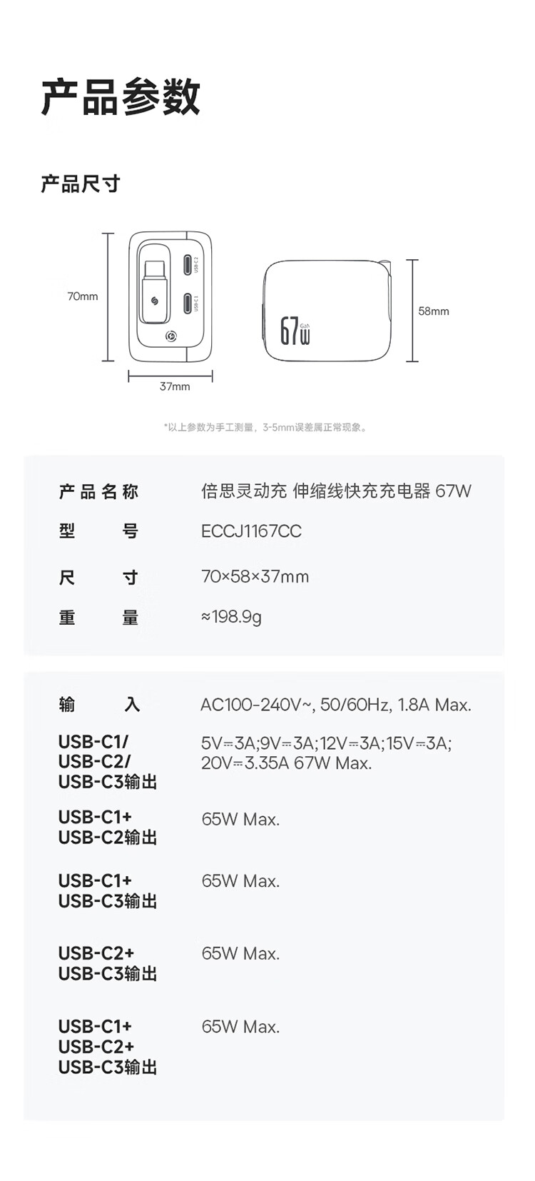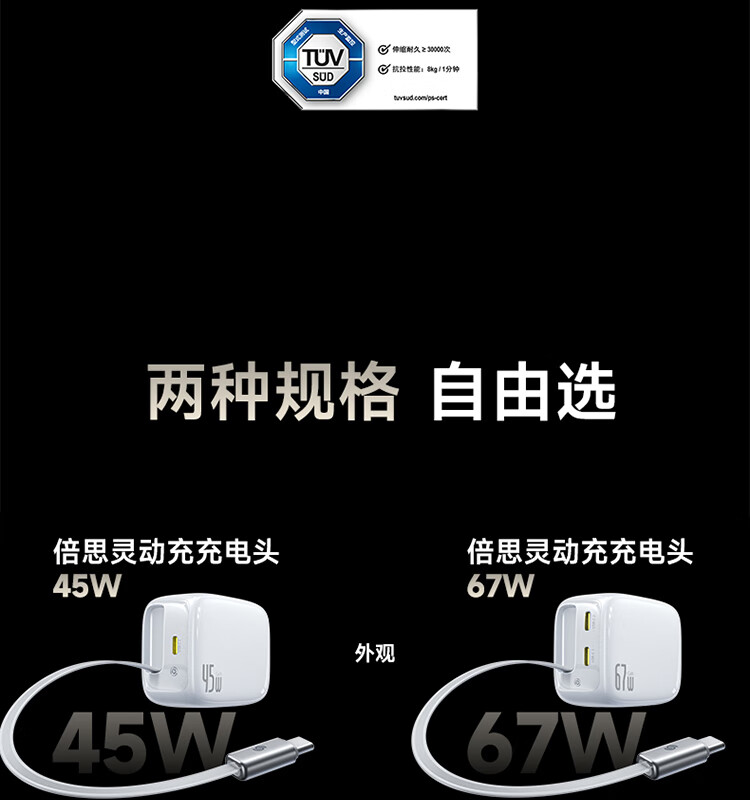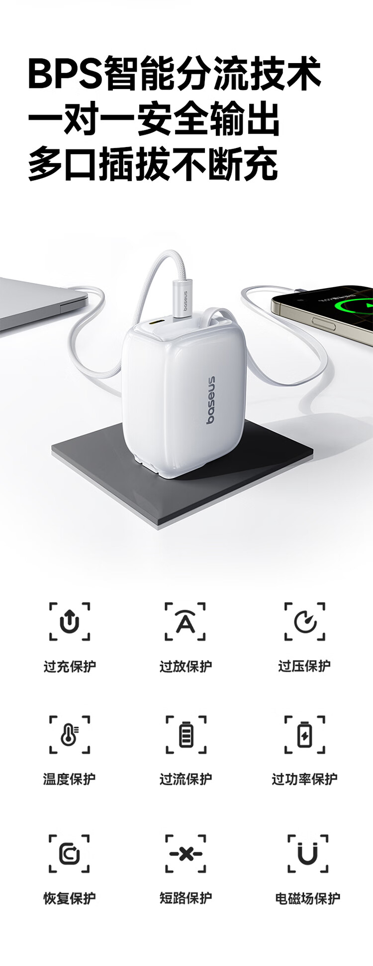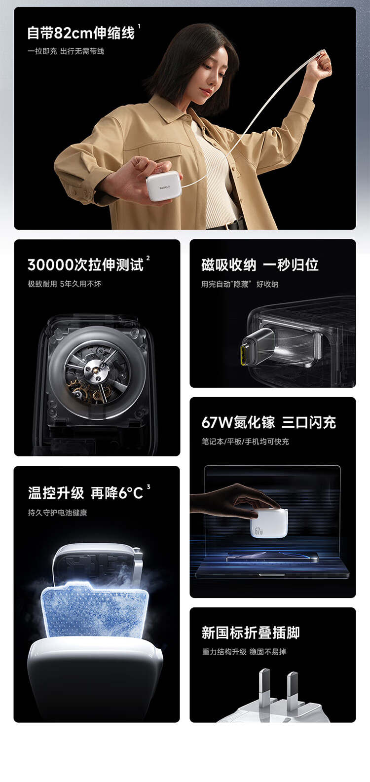倍思灵动充【67W自带线】氮化镓充电器65W快充头适用苹果17/16三星华为MacbookPro联想笔记本电脑 粉