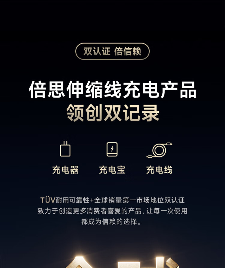二伯【3C认证 可上飞机】充电宝20000毫安22.5W超级快充自带线大容量移动电源适用苹果安卓华为手机 22.5W双线快充/2万毫安璀璨黑