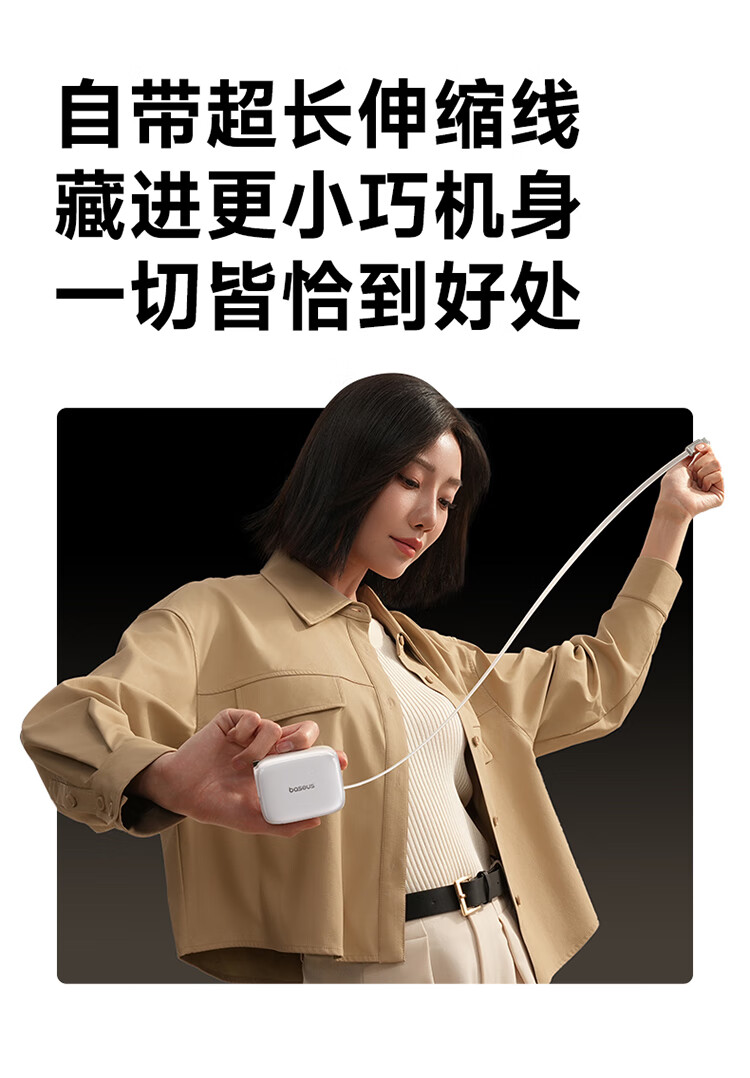二伯【3C认证充电宝 可上飞机高铁】27000毫安22.5w超级快充自带线大容量移动电源适用苹果安卓露营用 20000毫安(新3C认证+苹果安桌双线+数显))
