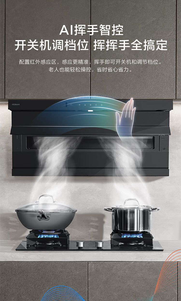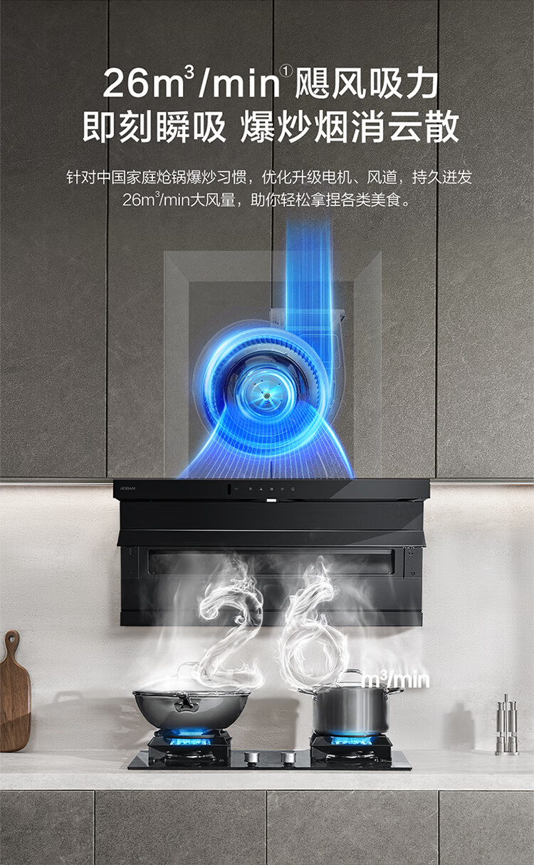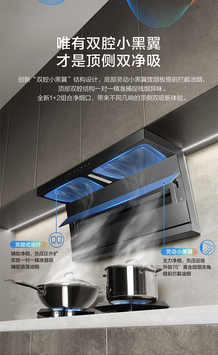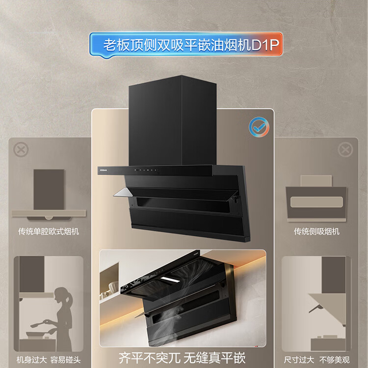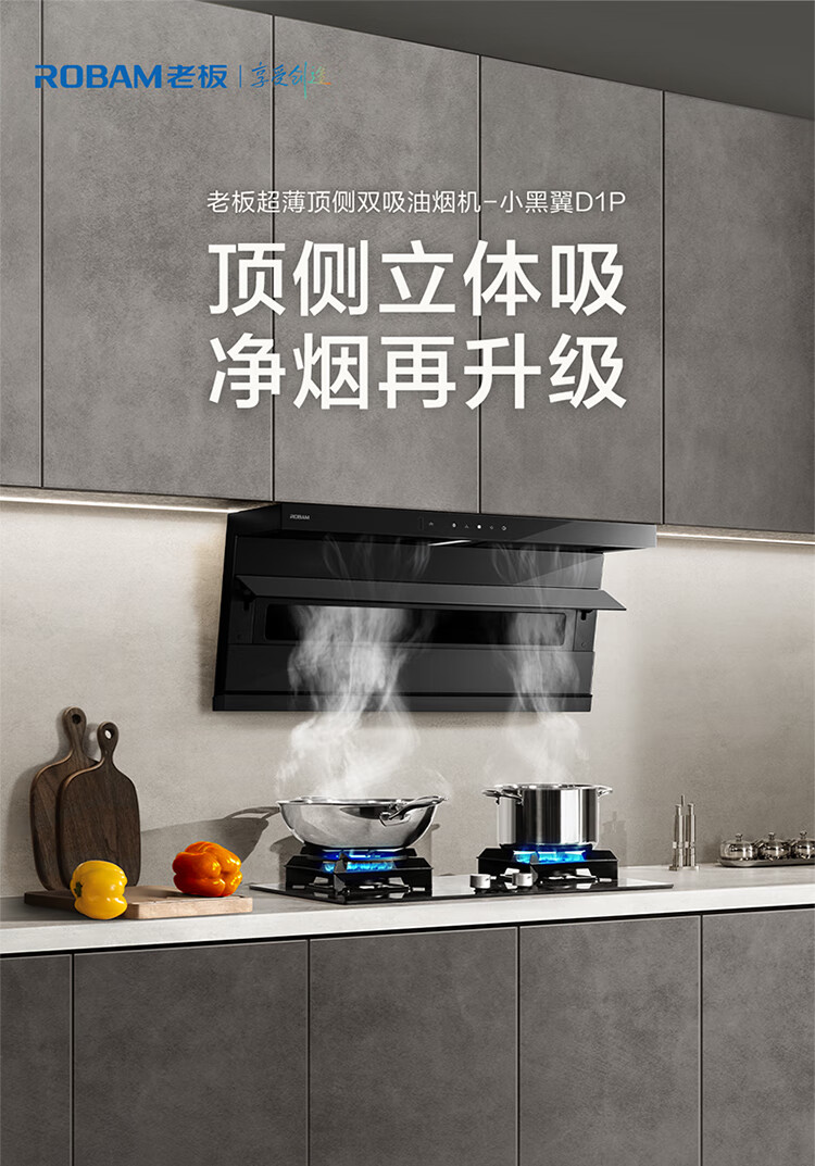 老板(Robam)【爆款小黑翼D1P】顶侧双吸pro超薄抽吸油烟机26大吸力静音一级能效以旧换新国家补贴可配燃气灶