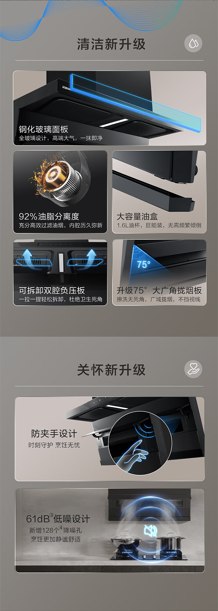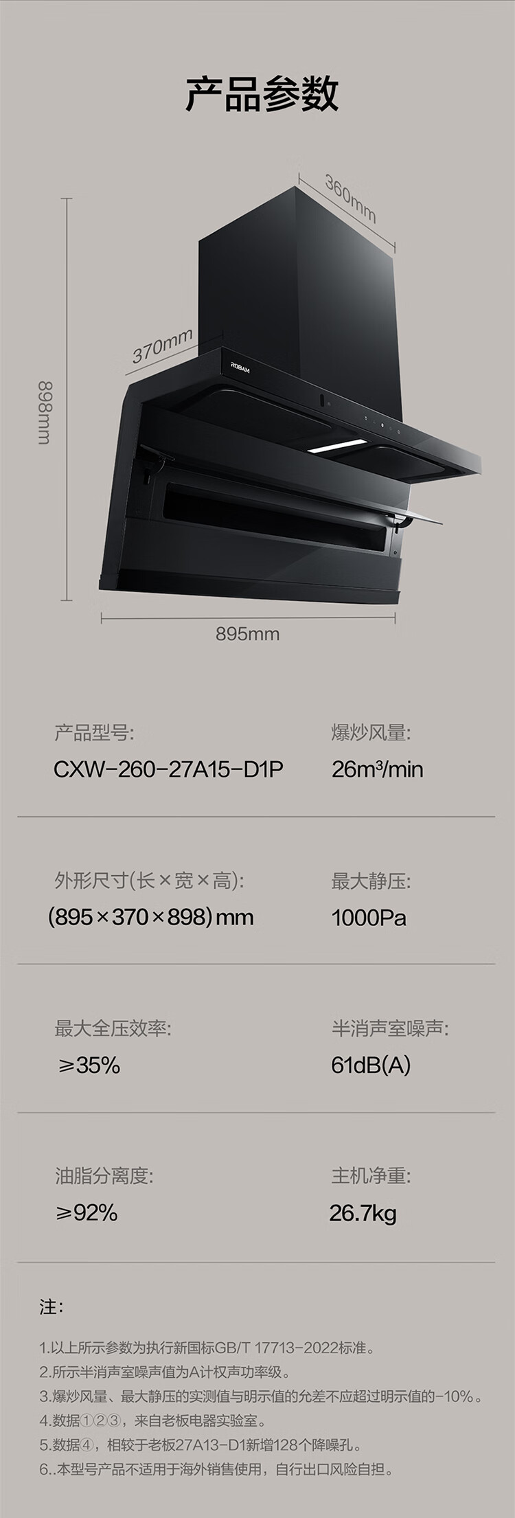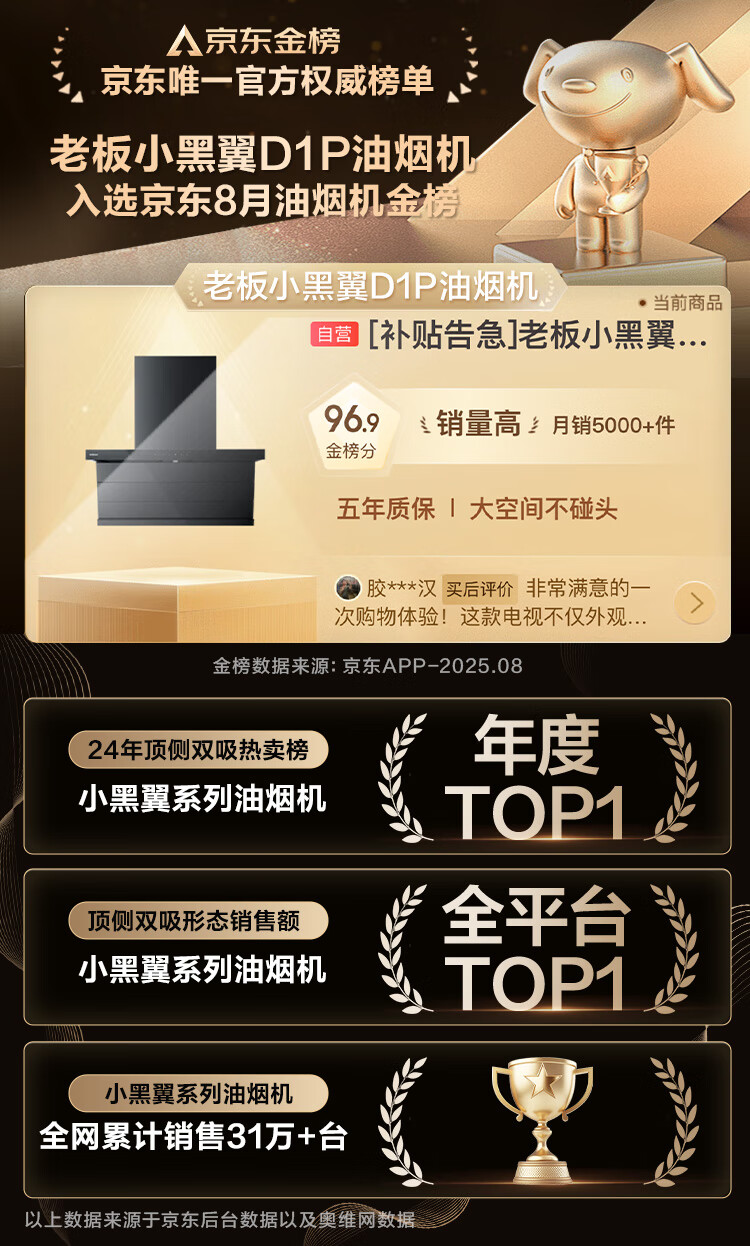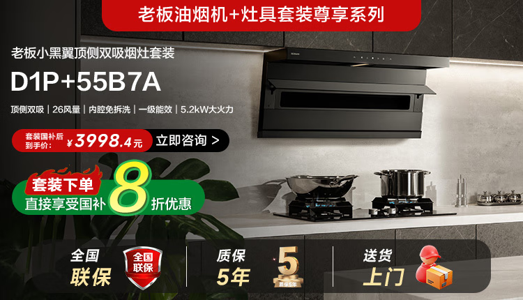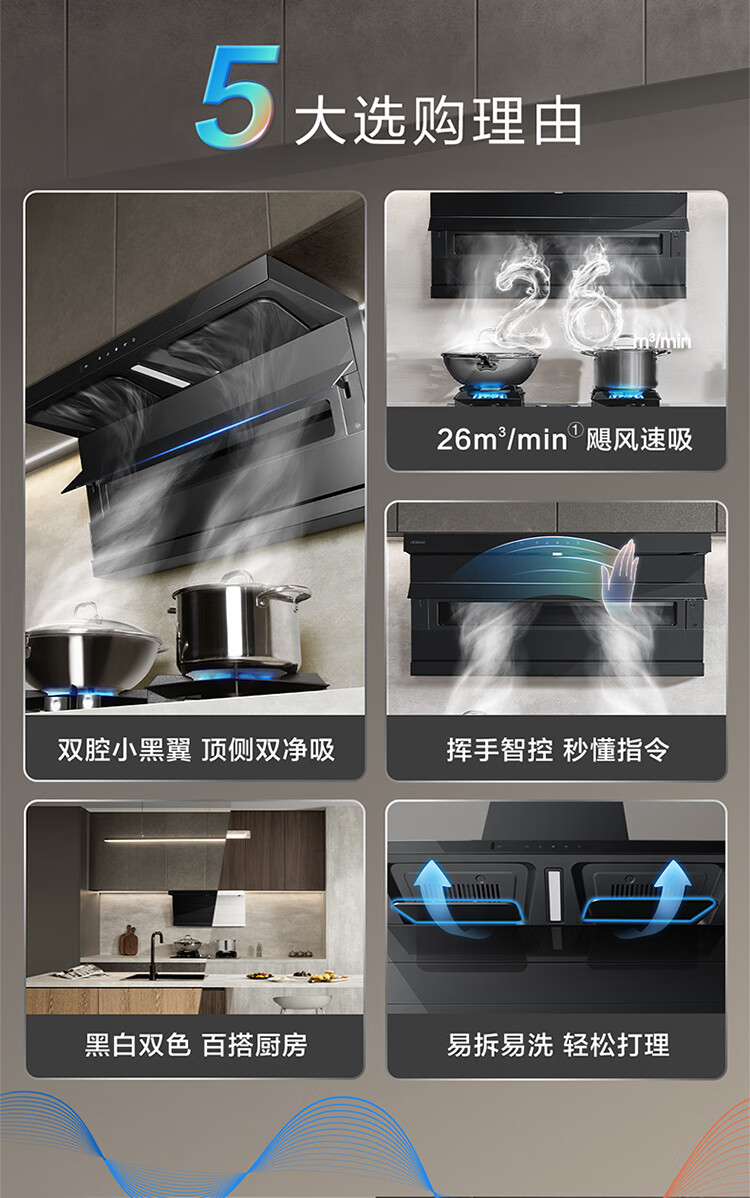老板(Robam)【爆款小黑翼D1P】顶侧双吸pro超薄抽吸油烟机26大吸力静音一级能效以旧换新国家补贴可配燃气灶