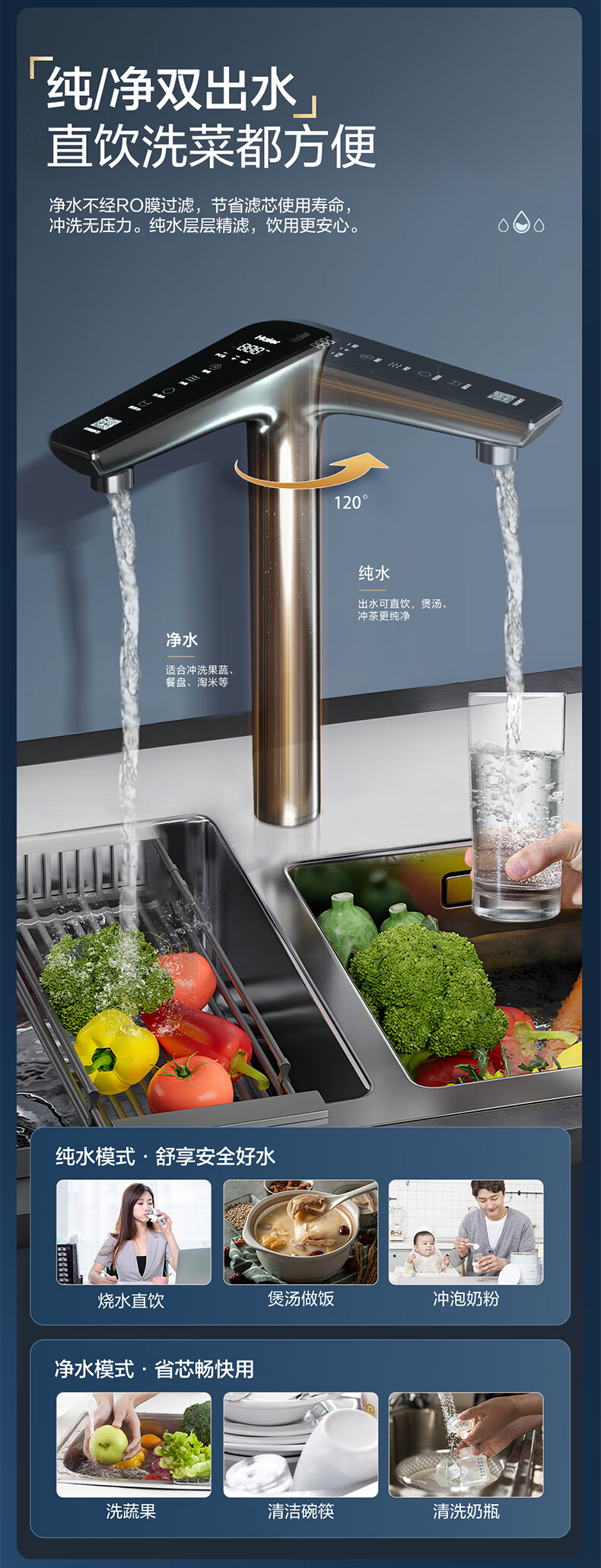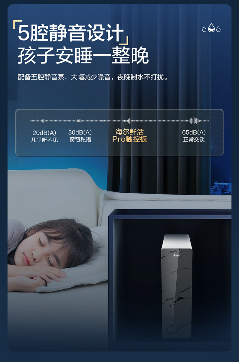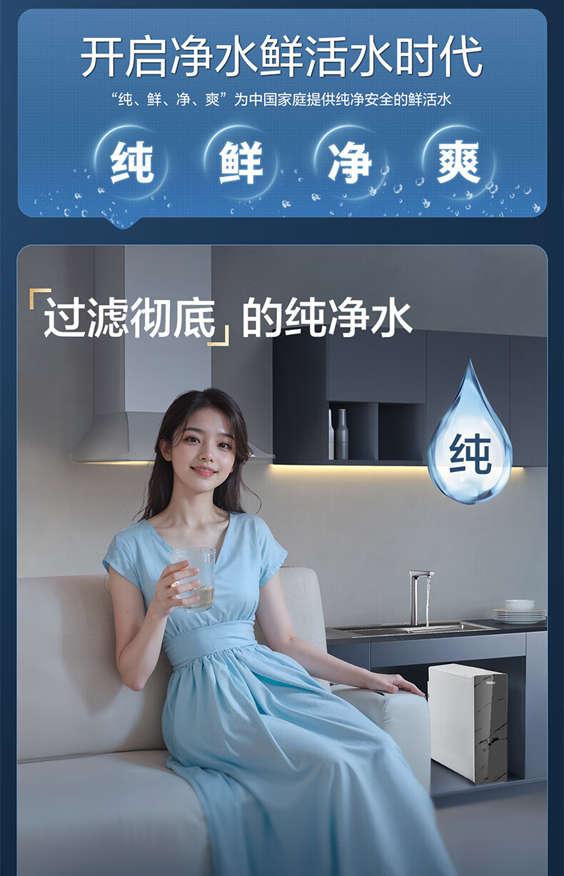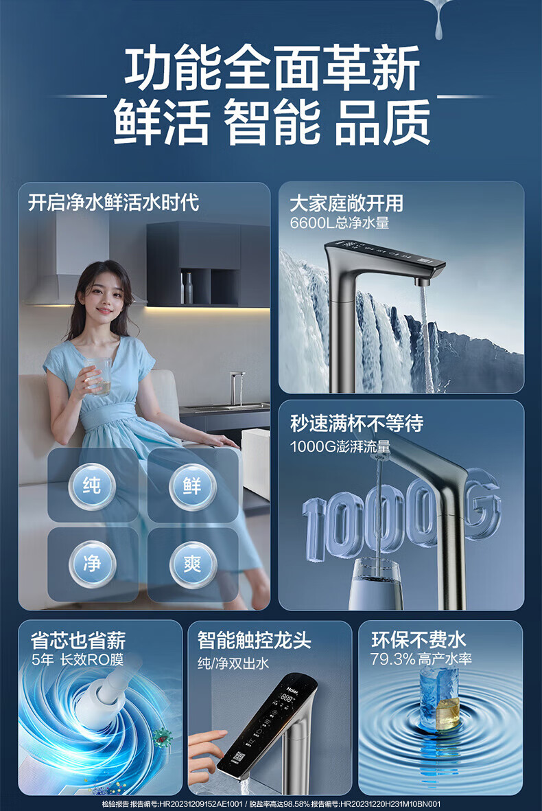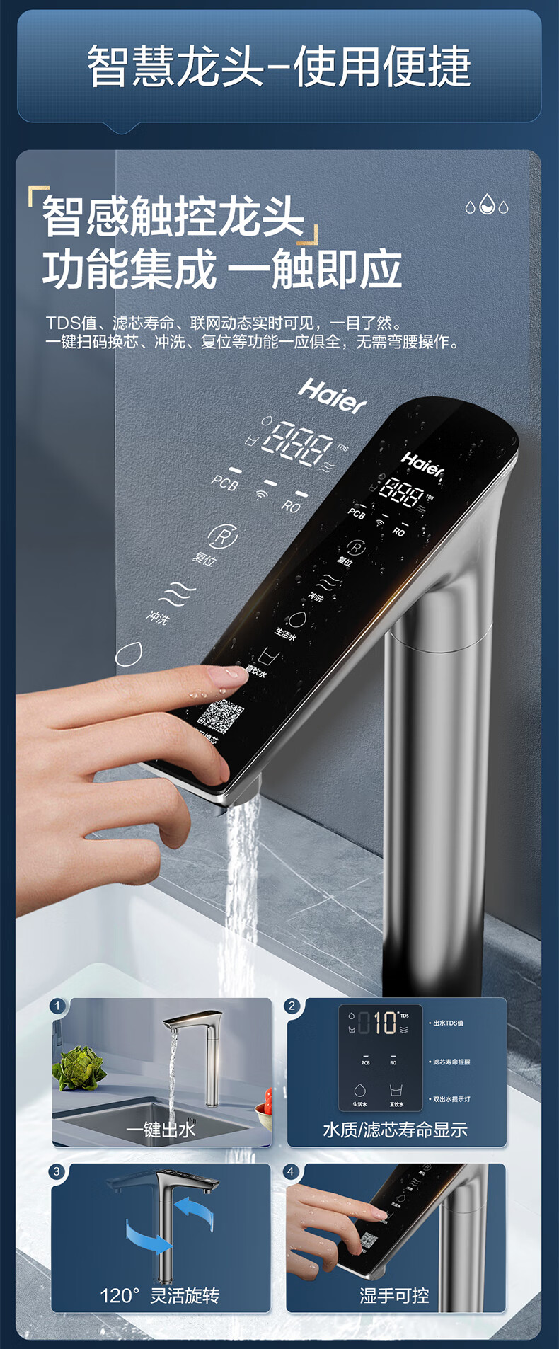 海尔(Haier)1000G鲜活水pro触控龙头净水器 政府补贴 家用星河厨下净水机反渗透净水器双出水净饮机