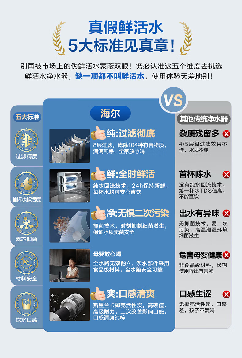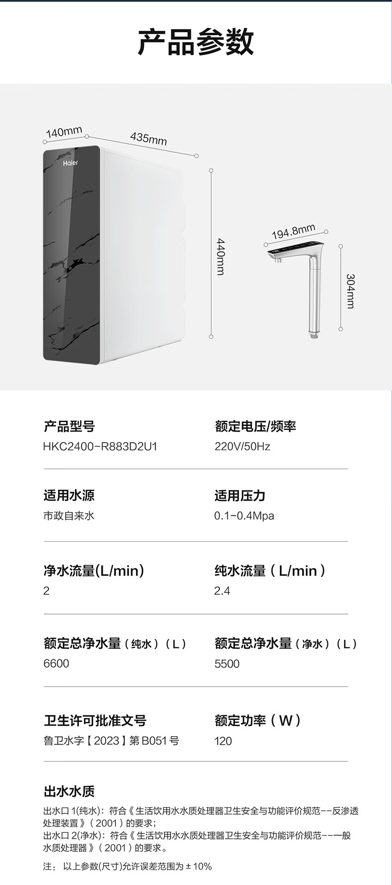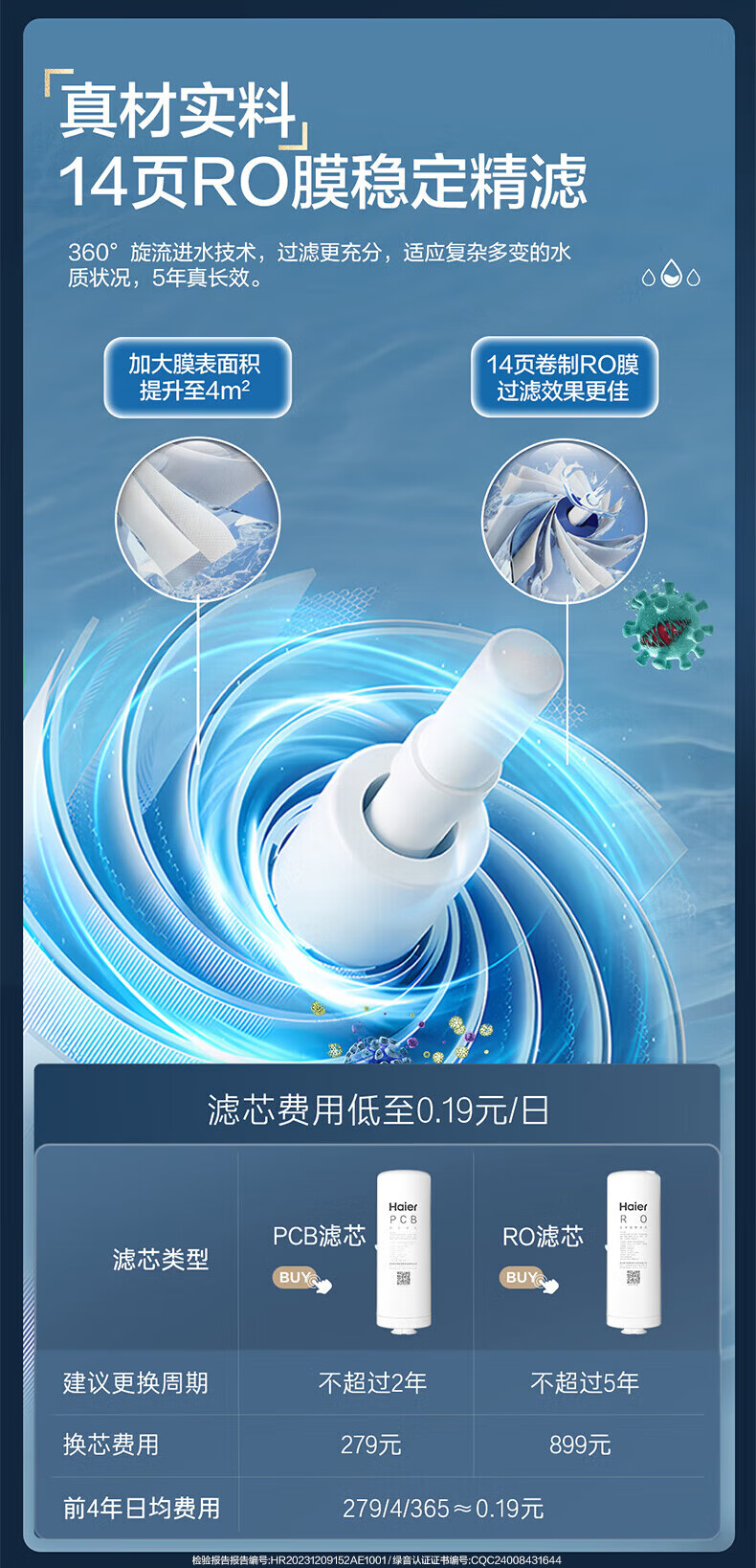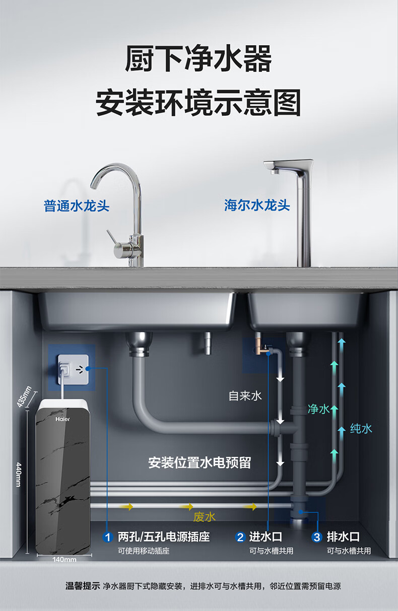 海尔(Haier)1000G鲜活水pro触控龙头净水器 政府补贴 家用星河厨下净水机反渗透净水器双出水净饮机