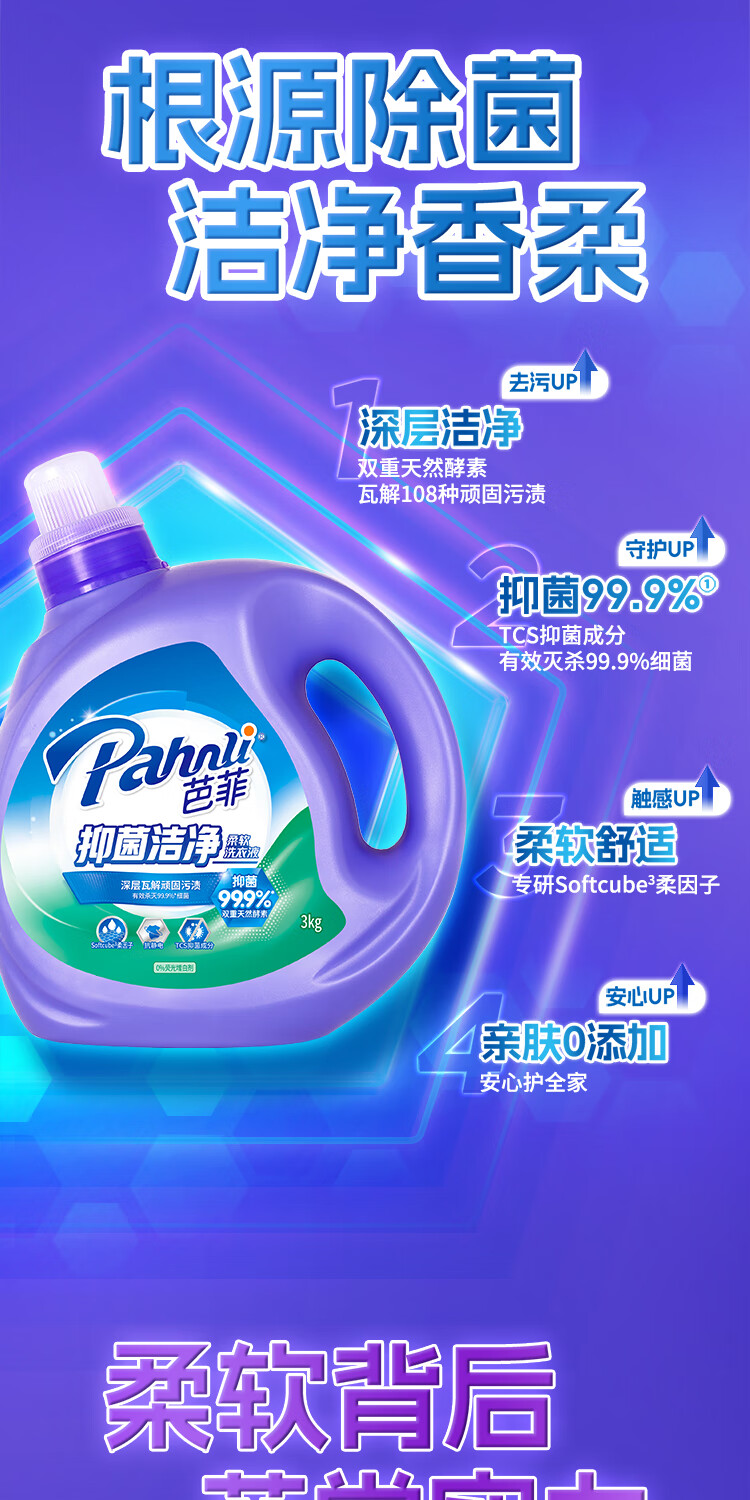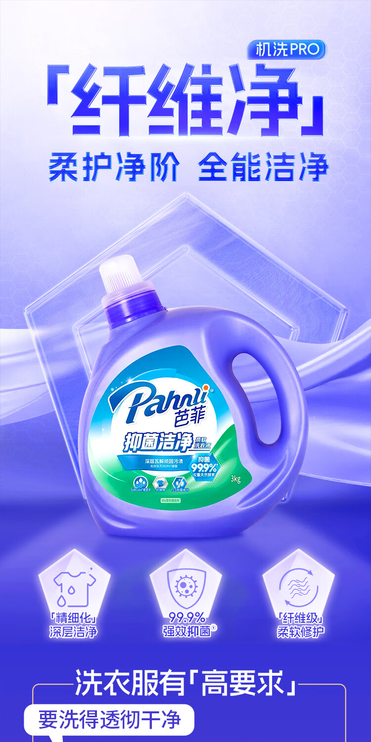 芭菲抑菌洁净洗衣液 香味持久 长效抑菌 深层清洁 护色 机洗手洗 10斤瓶袋组合【买再加赠1斤】