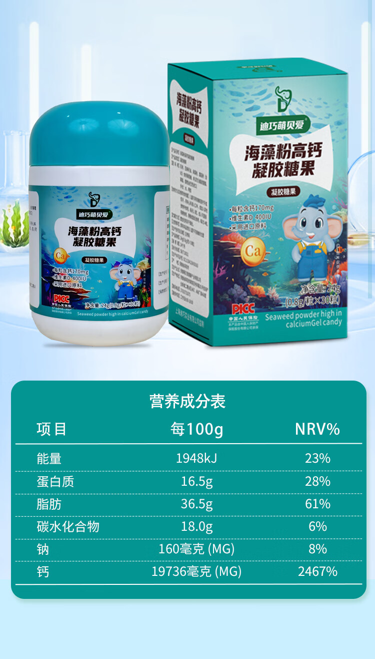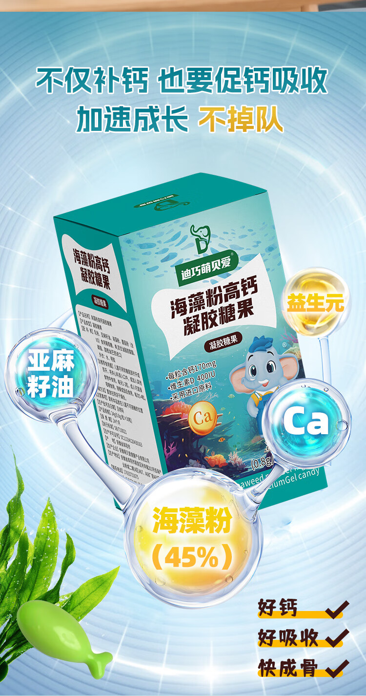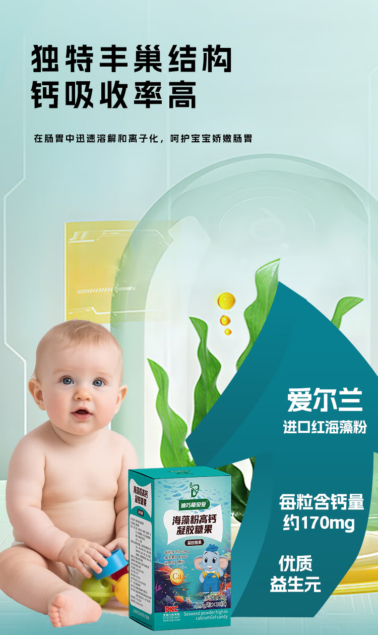 迪巧萌贝爱迪巧海藻钙婴幼儿婴儿液体钙 迪巧液体钙婴儿0-1岁液体钙婴儿补钙 6盒180粒【巩固装】 甄选爱尔兰红海藻钙(天然吸收率96%)