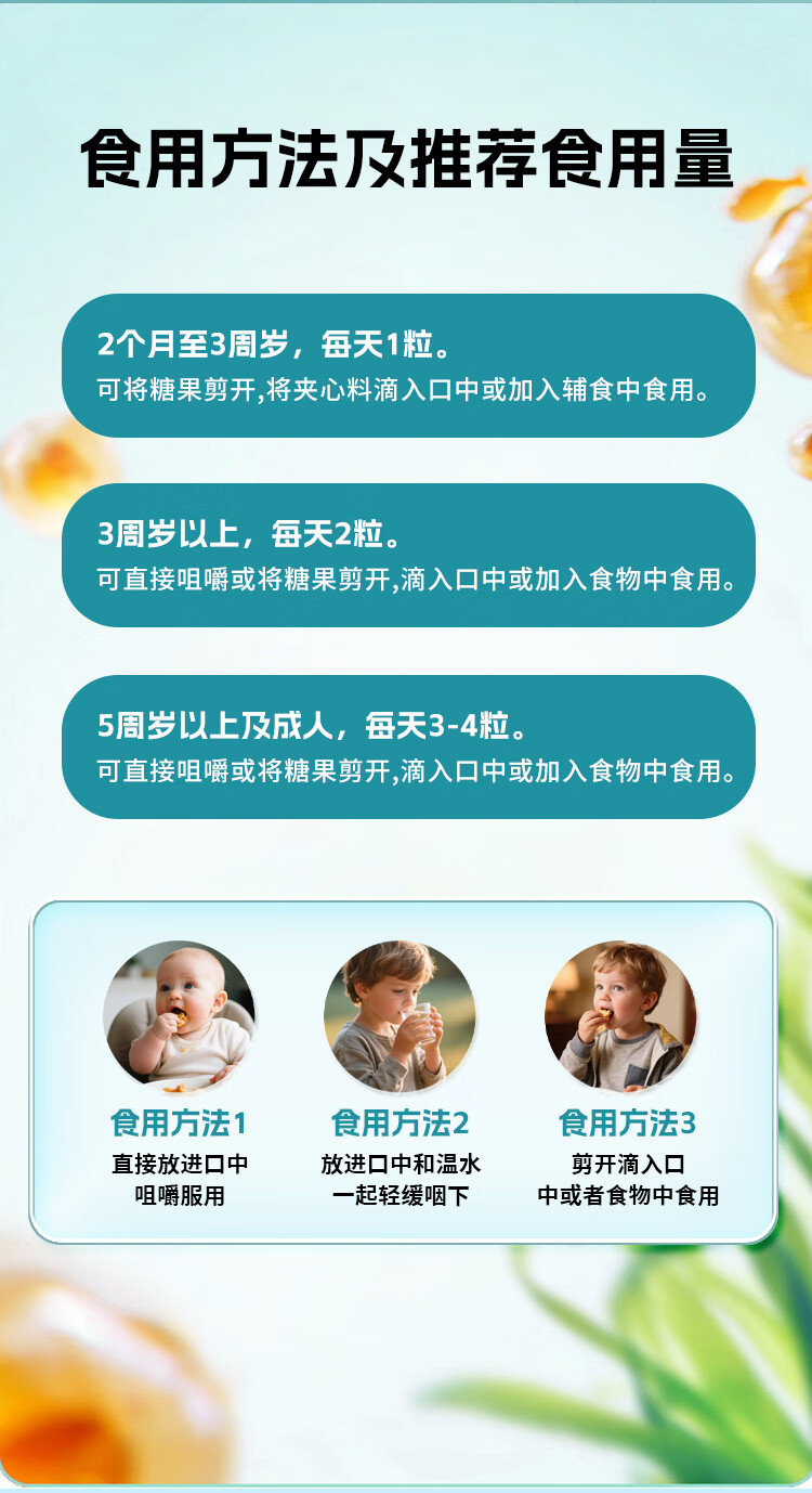迪巧海藻钙婴幼儿婴儿 迪巧液体钙 钙6-12个月液体钙婴儿补钙海藻 90粒【三盒装】