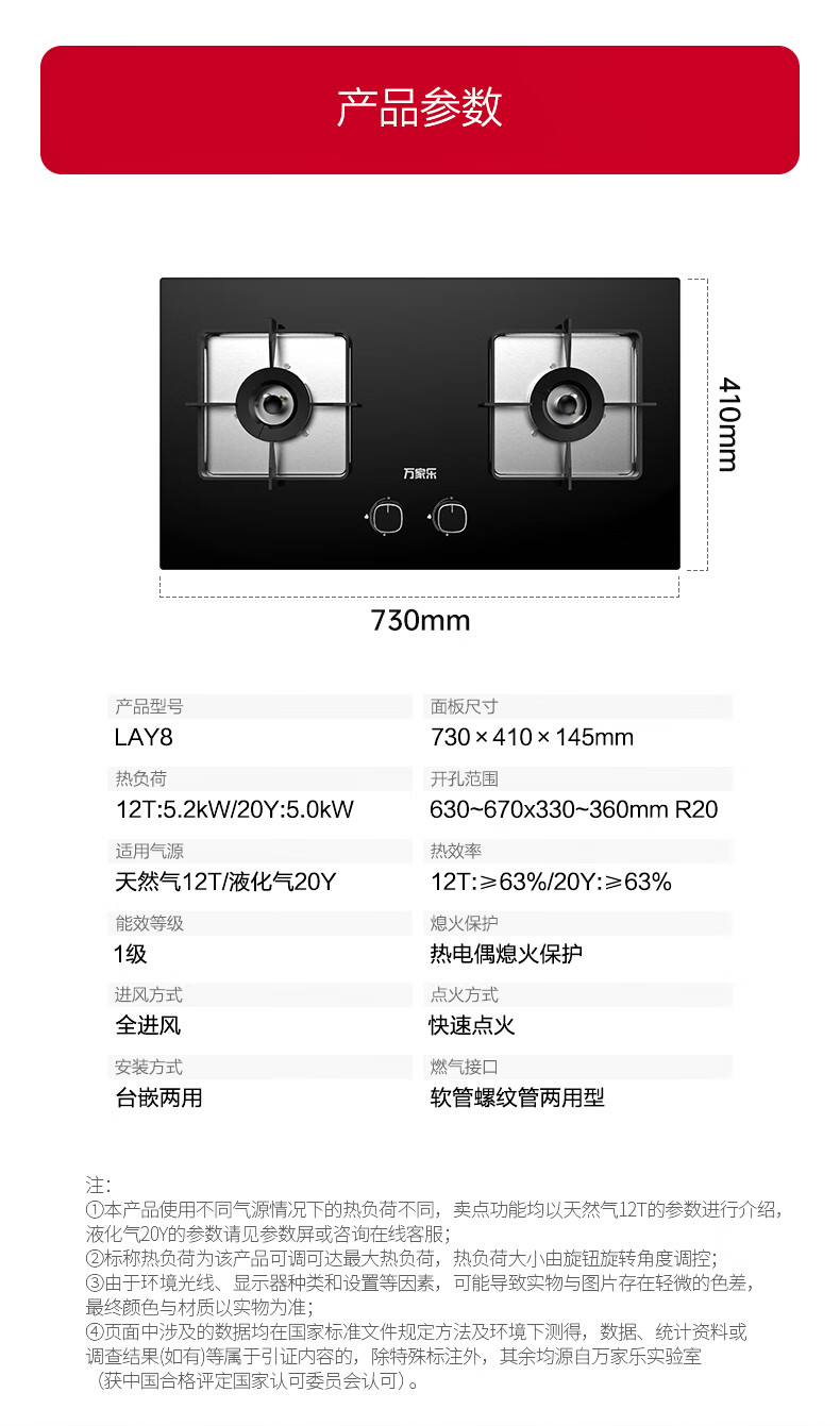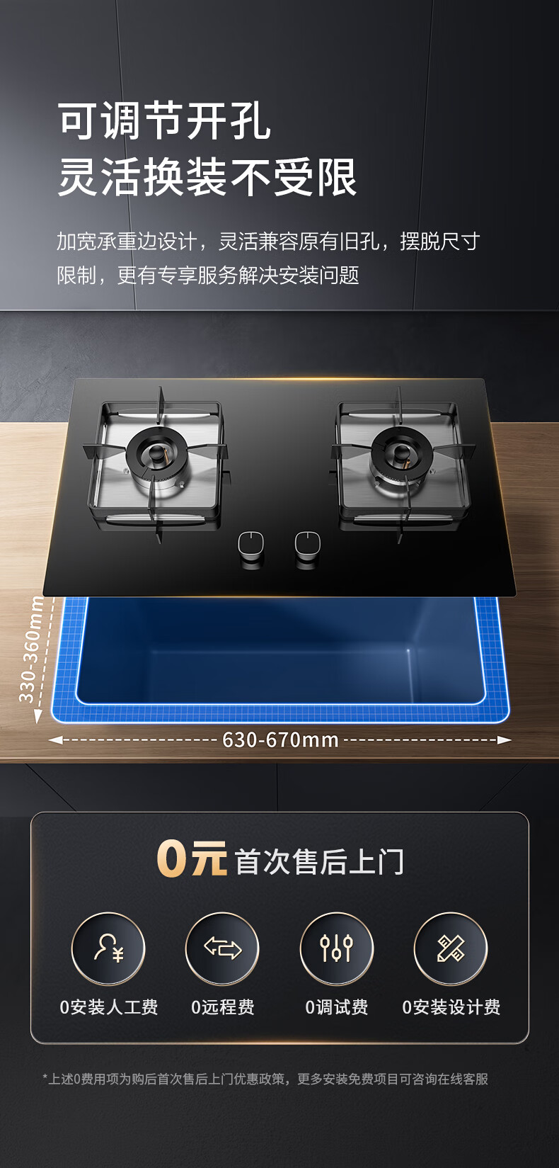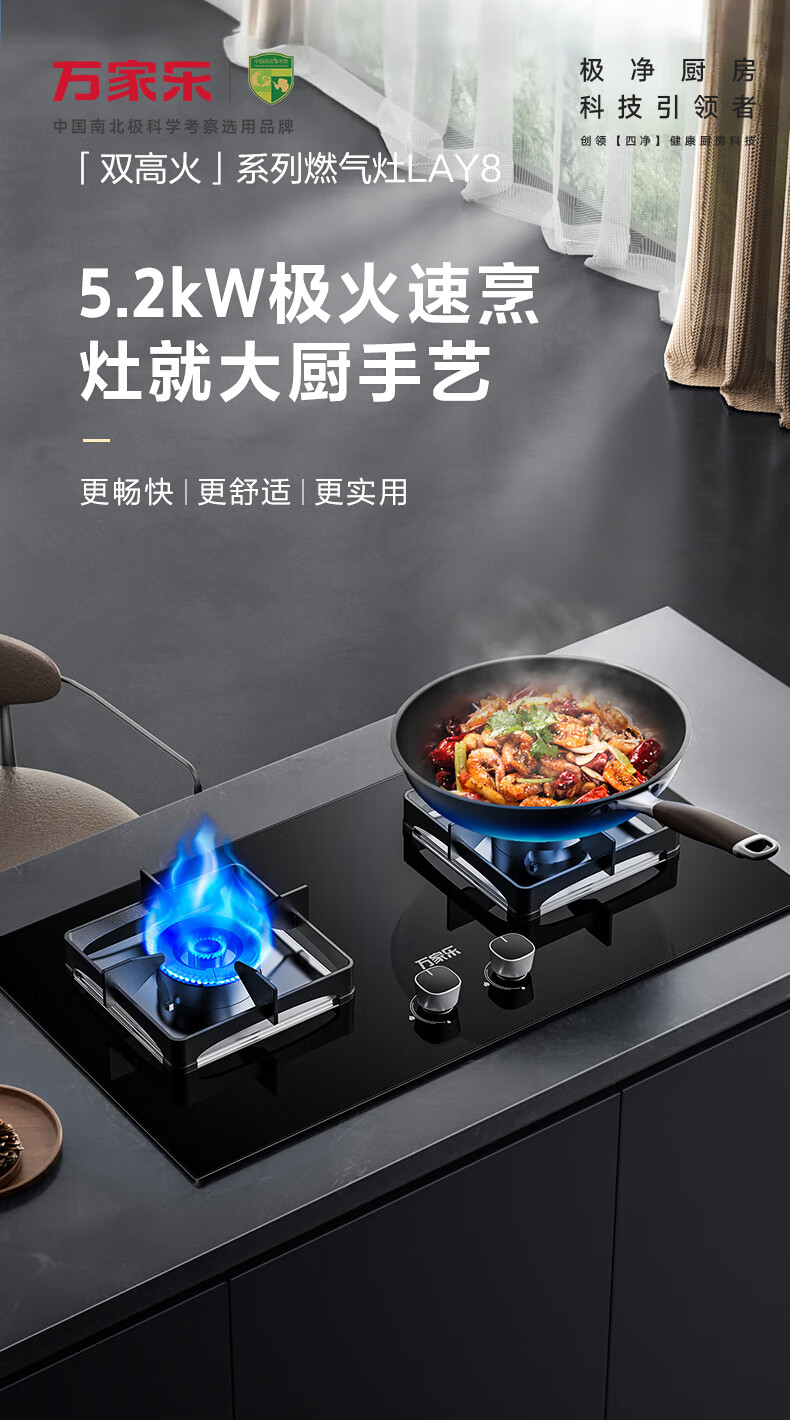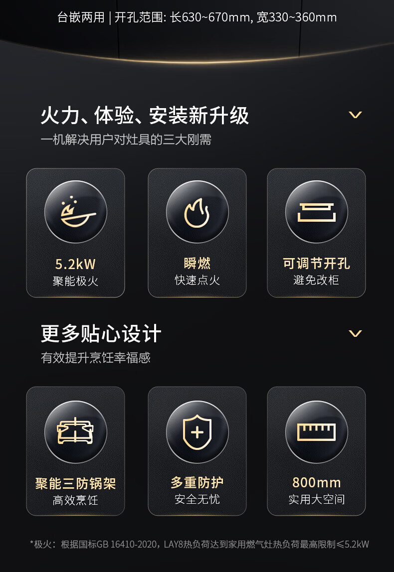 万家乐【双高火LAY8】燃气灶台嵌两用灶 5.2kw大火力嵌入式台式两用换新免扩孔 可适配开孔尺寸天然气灶