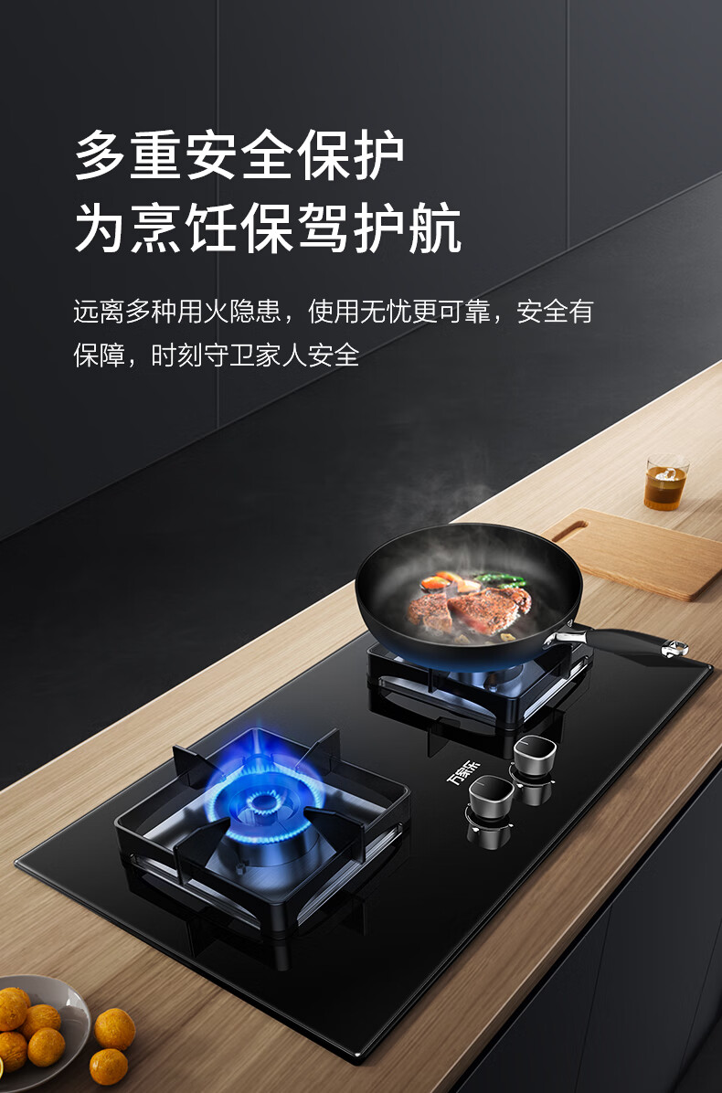 统帅(Leader)海尔燃气灶天然气灶【国补】家用双灶台嵌两用5.2KW瞬燃点火一级能效多重安全保护猛火灶JZT-LQ2GD