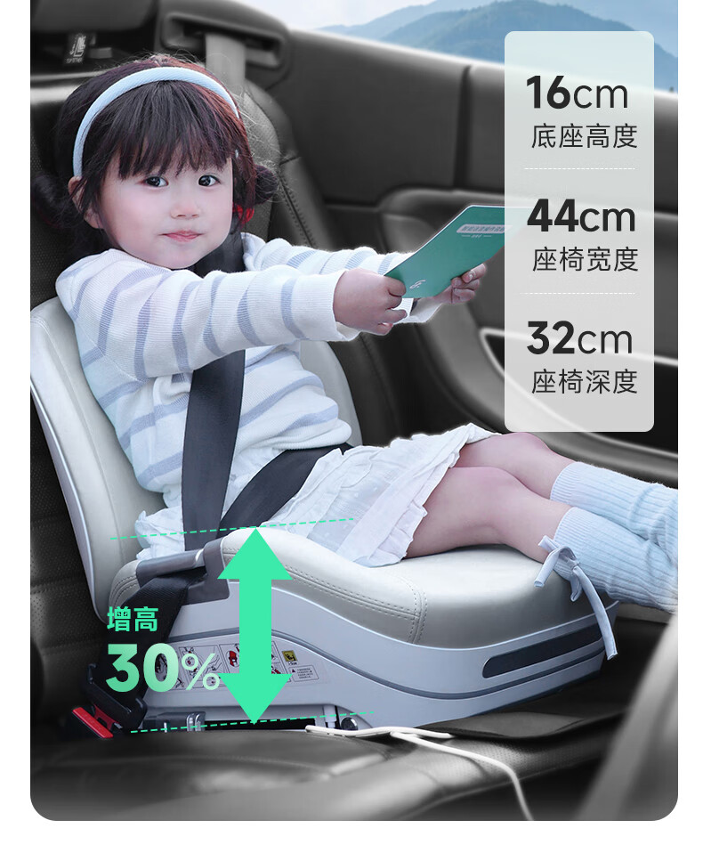 ledibaby儿童安全座椅3-12岁宝宝通用款汽车大童增高垫简易坐垫便携式 沧海号月影灰官配版