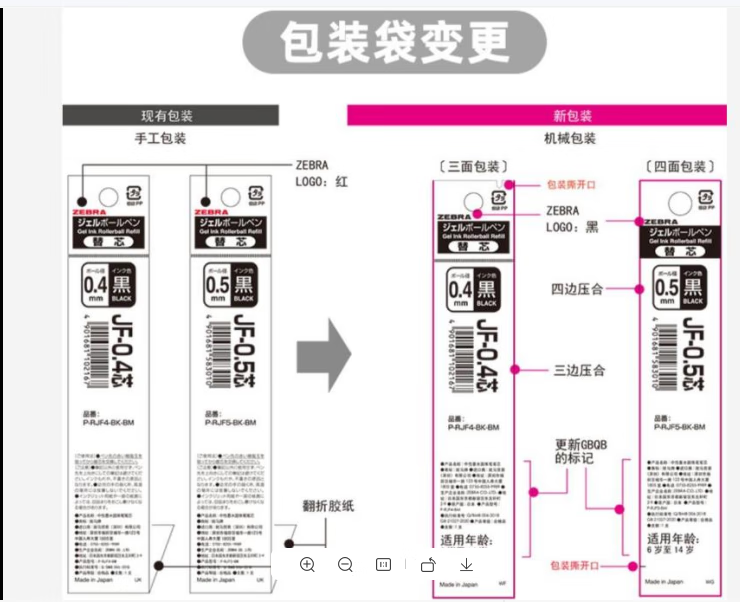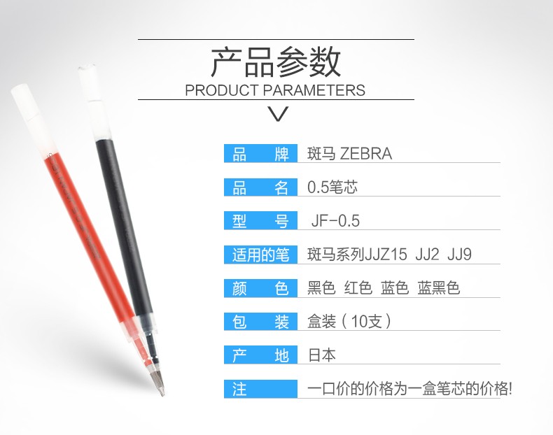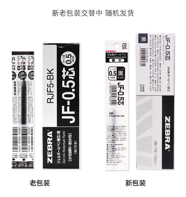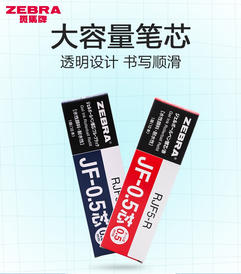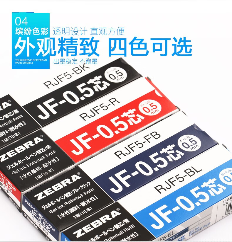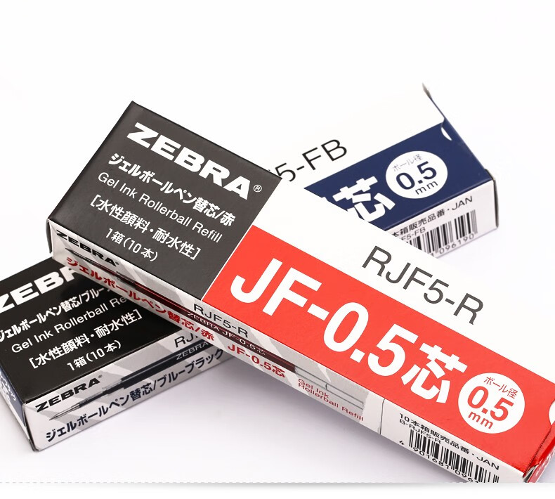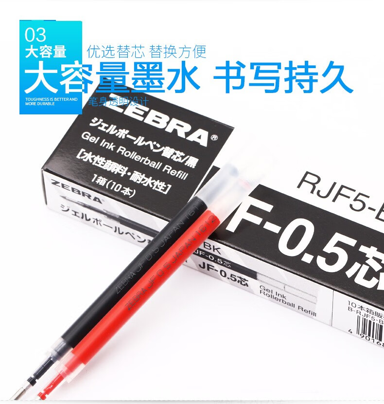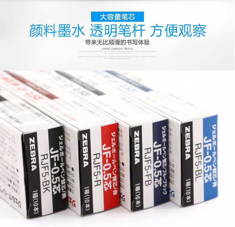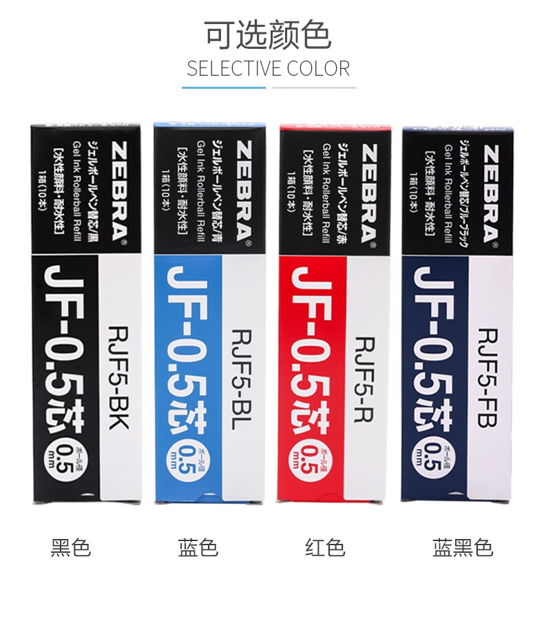 斑马牌(ZEBRA) JF-0.5中性笔替芯RJF5子弹头水笔芯适用于JJ15/JJZ49/JJ2 黑色 10支装/盒