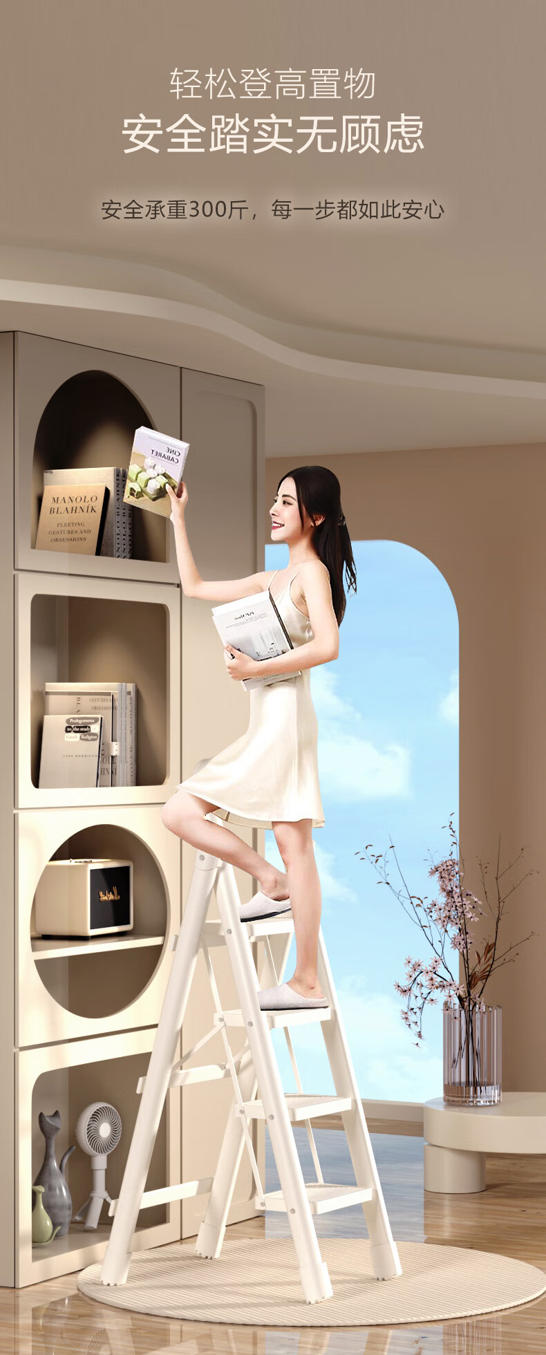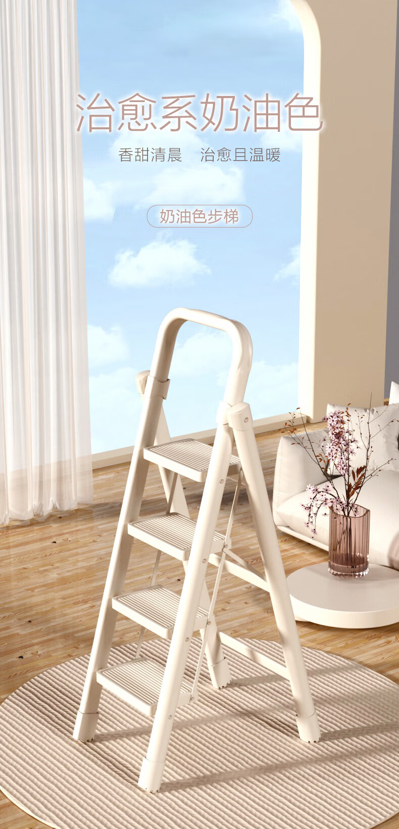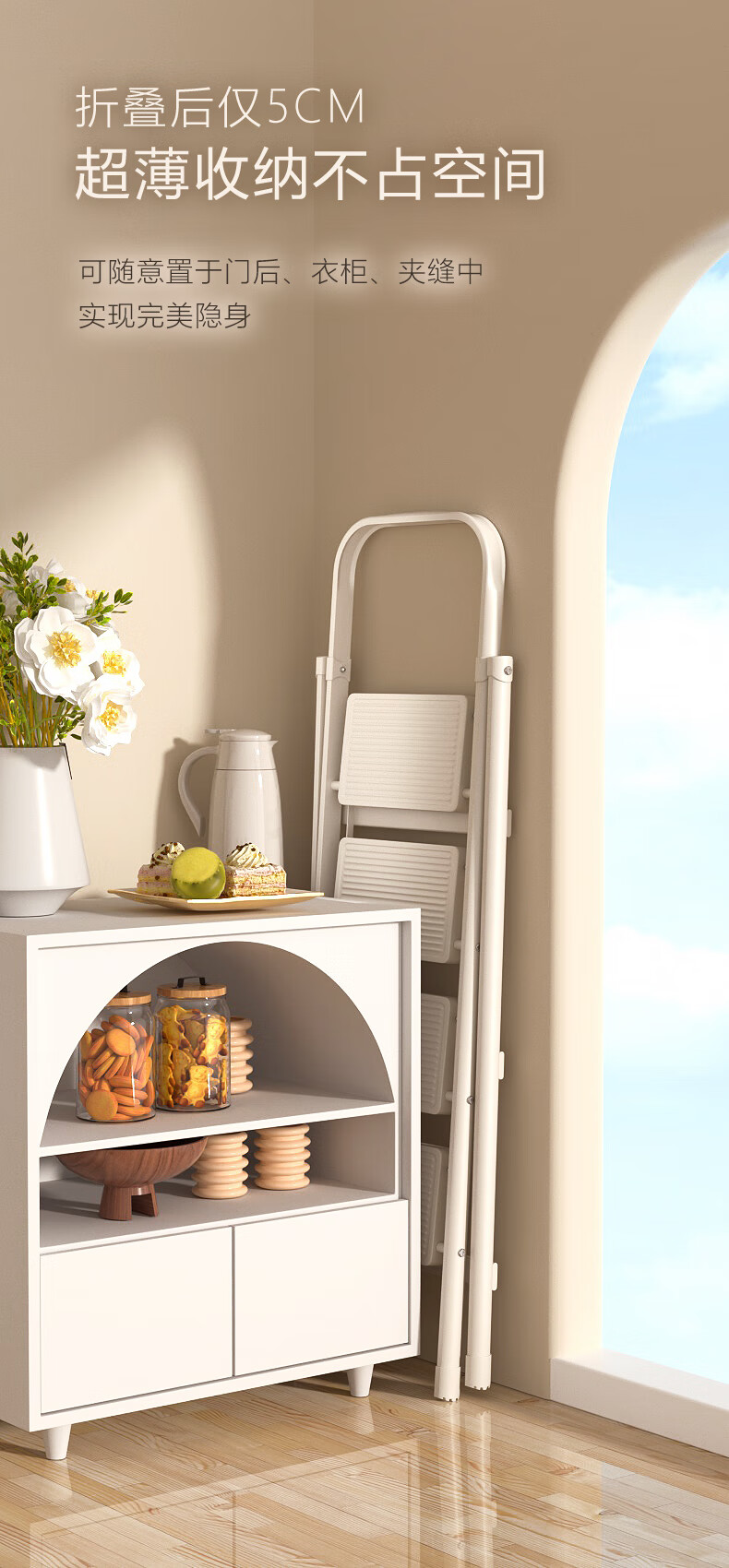 WCZ德国梯子家用折叠伸缩多功能便携梯人字梯加厚室内小型轻便乔 奶油白3步 加厚升级 单侧梯